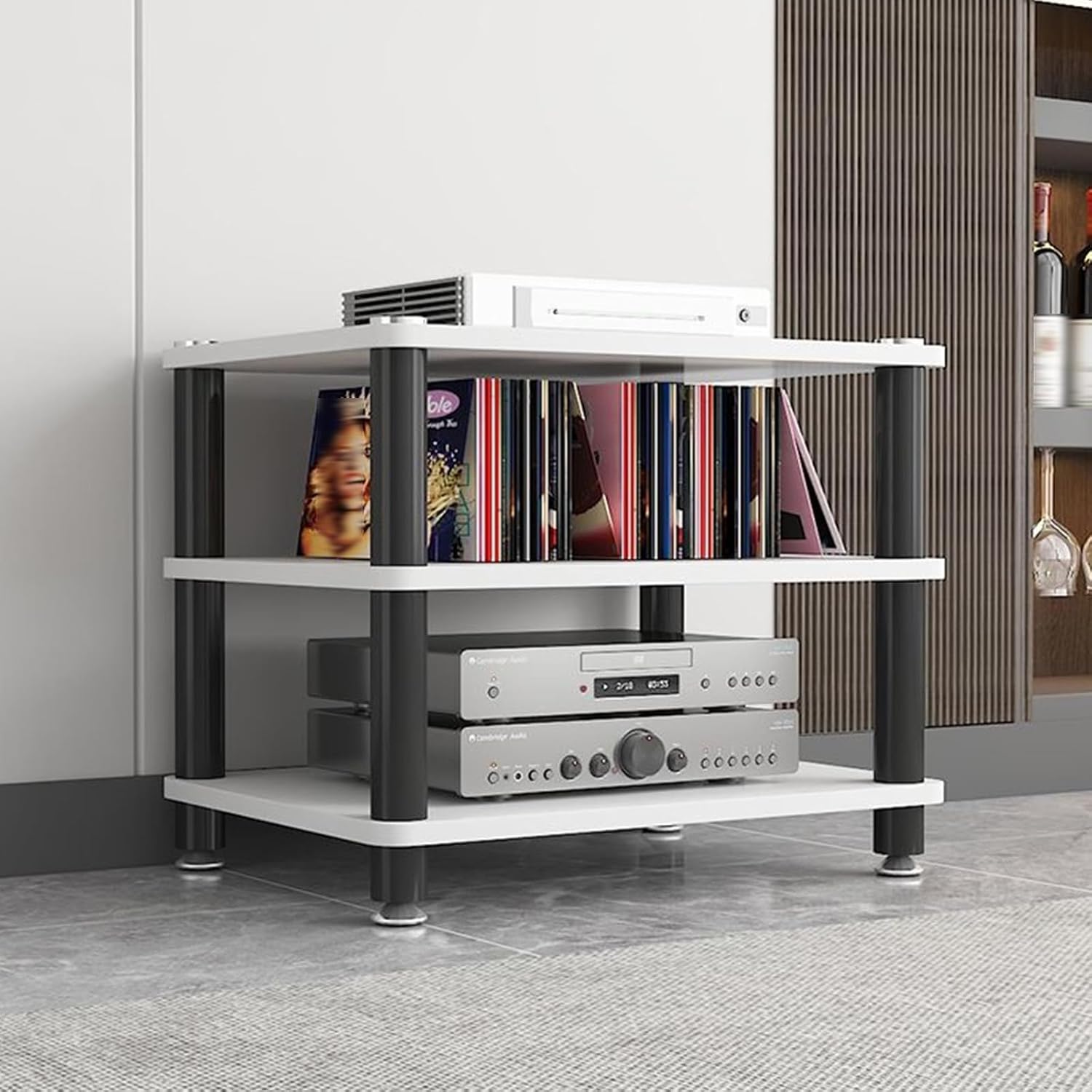 ✅ Looking for a modern media stand?✅ Would you like to add an audio equipment storage rack to your home theater or meeting room?The Media Stand can be used as a home storage rack to organize your audio-visual equipment, TV accessories, DVD players, game consoles, Blu-ray players, cable boxes, amplifiers, speakers, turntables and more , this will make a beautiful stereo stand for you. Provides maximum convenience for home organization.Making it the ideal centerpiece for any home entertainment setup.Features:- Small footprint to avoid clutter.- Open design is perfect for keeping your equipment cool and compartmentalised storage for organised sorting.- Stable and non-wobbly, holds most audio/video components.- Easy to clean,Wipe with wet cloth to remove dirt.- Multi-layer storage, effective and rational use of space.Specification:- Material: board + Solid wood frame- Size (LxWxH)1 Tier-60x40x5cm/23.6x15.7x1.96in2 Tier-60x40x30cm/23.6x15.7x11.8in3 Tier-60x40x50cm/23.6x15.7x19.7in4 Tier-60x40x70cm/23.6x15.7x27.5in- Load capacity per level: 50kg/110.2lbs- Applicable scene: home / office / shop / theater/ bedroom / living room, etcPackage Included:1 x Stereo Cabinet (Excludes items shown on pictures)Note:- There may be some differences between the picture and the product due to display and lighting, please refer to the actual product.- Because it is processed by hand, the finished product usually has an error of 1-2 cm, please understand.