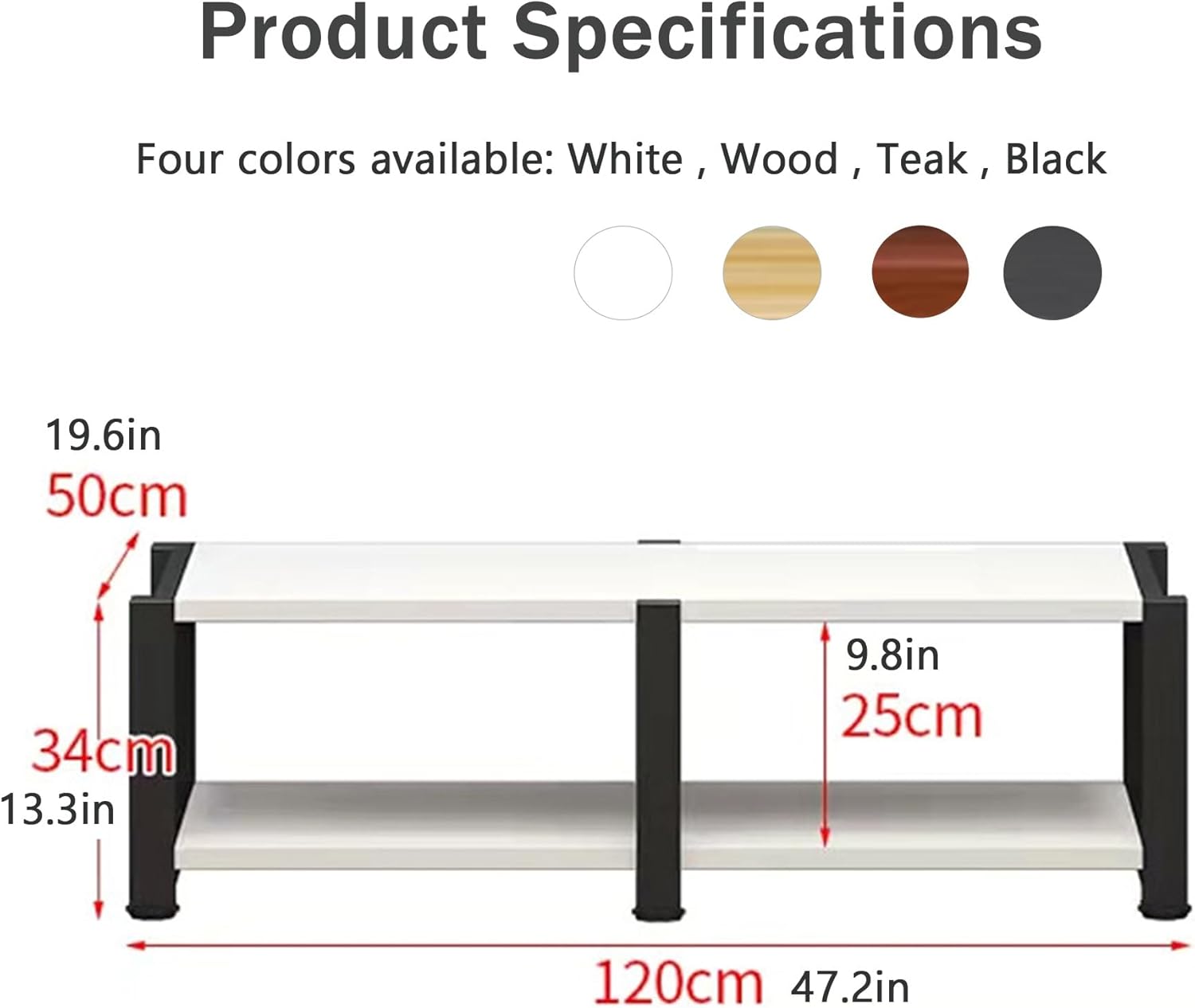 Strong & Reliable BuildThis AV media stand features a reinforced steel-and-wood construction with thickened boards and heavy-duty steel columns. The stable structure delivers excellent load-bearing capacity, making it a dependable audio rack for daily use.Spacious Double-Tier StorageWith an extended 47.2 in (120 cm) double-position design, this media stand offers generous storage space. Wide shelves easily hold audio components, books, décor, or electronics, keeping your space open and organized.Open Design for Better CoolingThe open-frame audio-video shelving allows proper airflow to help dissipate heat, reducing overheating risks and extending the lifespan of your equipment. Non-slip foot pads protect floors and enhance stability.Versatile for Multiple RoomsUse it as an audio equipment rack in your home theater, a TV stand in the living room, or a practical storage shelf in bedrooms and small spaces—flexible enough to fit your lifestyle.Easy Assembly, Everyday ConvenienceDesigned for quick setup, this stereo rack includes simple instructions and all necessary hardware, allowing you to assemble it easily and enjoy clutter-free organization in no time.Product specifications-Name: AV media stand-Material: Wood + Metal-Is assembly required: Yes-Applicable scenarios: Home / Office / Store / Theater / Bedroom / Living RoomPurchase Notice:1. Please allow a 1-2cm(0.4–0.8 in) difference due to manual measurement.2. Due to different lighting, equipment, shooting angles and computer resolutions, there may be color differences, please refer to the actual product.