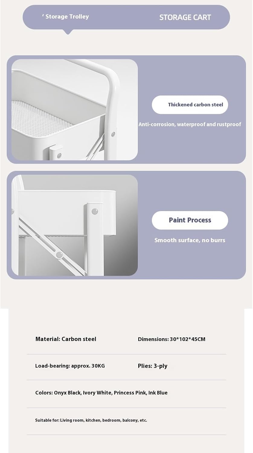 Transform your space with this versatile folding cart that combines style and functionality. This sleek storage solution features three spacious tiers perfect for organizing books, snacks, supplies, or backpacks. The durable wrought iron construction ensures stability while maintaining a lightweight design. Equipped with smooth-rolling universal wheels, this cart offers excellent mobility and can be easily moved wherever needed. The convenient snap-lock mechanism allows for quick adjustment and setup with no installation required. When not in use, the cart folds flat for compact storage. The mesh design adds a modern touch while providing visibility of contents. Available in classic white or soothing blue, this cart works beautifully in home offices, kids' rooms, kitchens, or any space needing flexible storage. The sturdy shelves keep items organized and accessible, while the portable design makes it perfect for small spaces or rooms where storage needs change frequently. Whether storing school supplies, snacks, or reading materials, this rolling cart delivers both form and function.