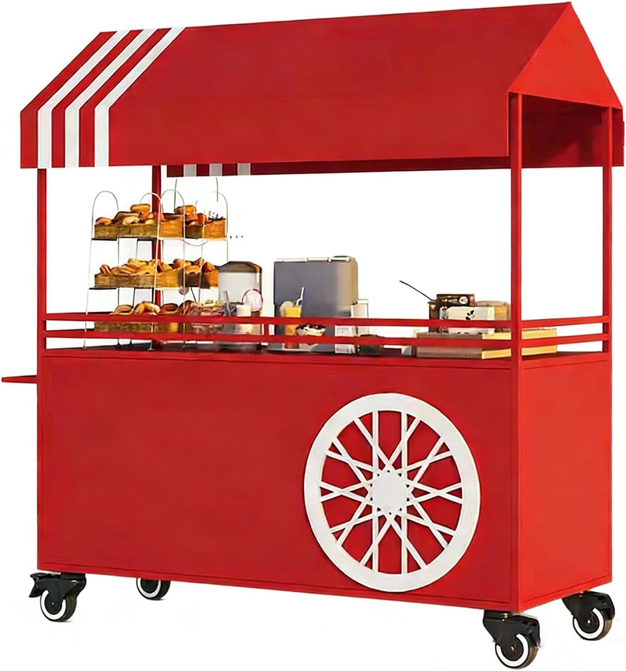 Elevate your vending experience with our Portable Cart with Canopy, designed specifically for markets, street food, and events. This versatile vendor cart combines eye-catching design, robust functionality, and ease of use, making it an ideal solution for showcasing snacks, drinks, desserts, or merchandise.