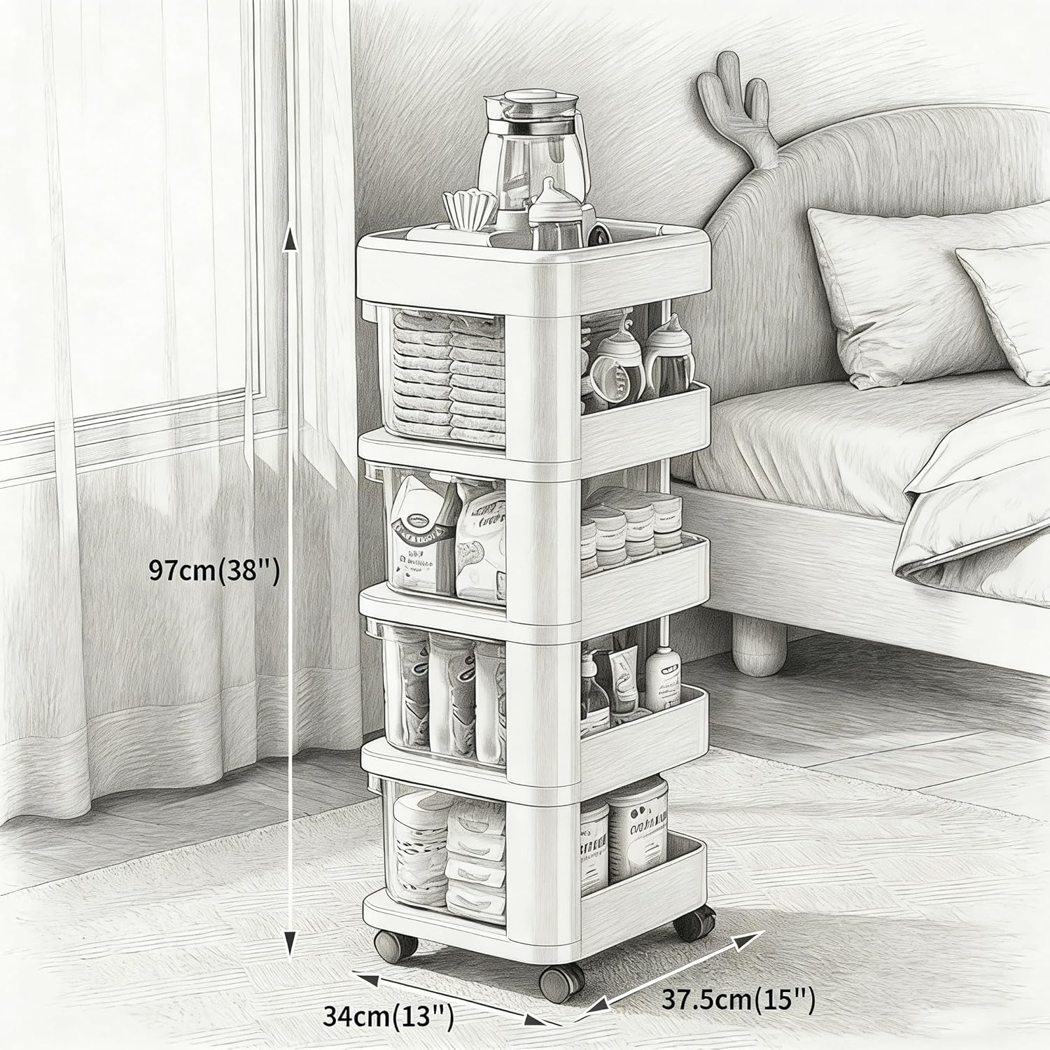 This versatile mobile storage rack is your ideal solution for tackling household clutter and optimizing space utilization. It cleverly combines modular design, thoughtful details, and practical functionality to create a cleaner, more convenient living environment.SpecificationsAvailable tiers: 2 tiers/3 tiers/4 tiersMain Material: PP PlasticFrame Colors: Black, White, Beige, Green, RedDrawer Type: Transparent Drawers with Raised Safety RailsWheel Configuration: 4x360 Silent Swivel CastersProduct Dimensions2 Tier: 34x37.5x55cm (13x15x22in)3 Tier: 34x37.5x76cm (13x15x30in)4 Tier: 34x37.5x97cm (13x15x38in)