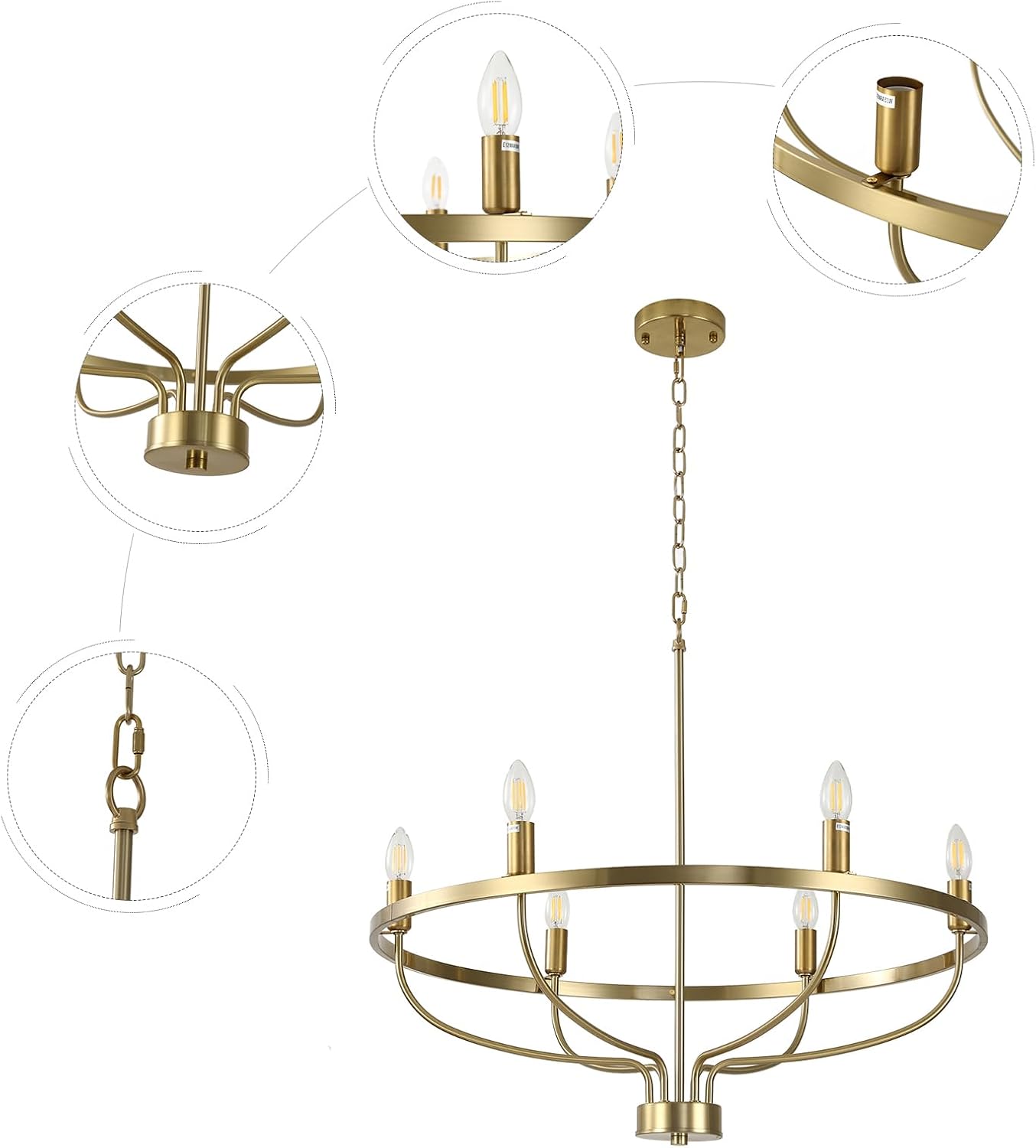 DescriptionPendant light is an integral part of home decor, providing not only essential lighting, but also adding a beautiful visual effect to the room. In the living room, an atmospheric pendant light can bring a sense of elegance and nobility to the entire space, while in the bedroom, a soft one creates a warm and comfortable atmosphere for your resting environment. On any occasion, it can add more goodness to life.DetailsStandard Lamp Holder: With a standard E12 lamp holder, it is compatible with various E26 bulbs to facilitate the replacement of bulbs.High-temperature Baking Process: Its surface has undergone a refined high-temperature lacquer process that offers unparalleled protection against rust and corrosion, thus enabling it to find a home in a myriad of diverse installation environments, and expanding its versatility to unprecedented heights.ApplicationIt is suitable for a kitchen island, dining room, entryway, stairway, cafe, club, bar, restaurant, and library of 107.6-215ft². It is compatible with a variety of Edison, CFL, or LED light bulbs, and is compatible with different types of ceiling designs, such as arched ceilings, sloping ceilings, and flat ceilings.SpecificationColor: GoldenMaterial: IronStyle: Modern, IndustrialSurface Treatment: High-temperature Baking PaintVoltage: AC 110V-120VSingle Bulb Power: Max. 60WLight Source: 6* E12 Bulbs (Not Included)Efficiency: EMount Type: Ceiling MountApplicable Area: 10-20m²/107.6-215ft²Indoor/Outdoor Usage: IndoorType: American StandardPackage Including1* Pendant Light
