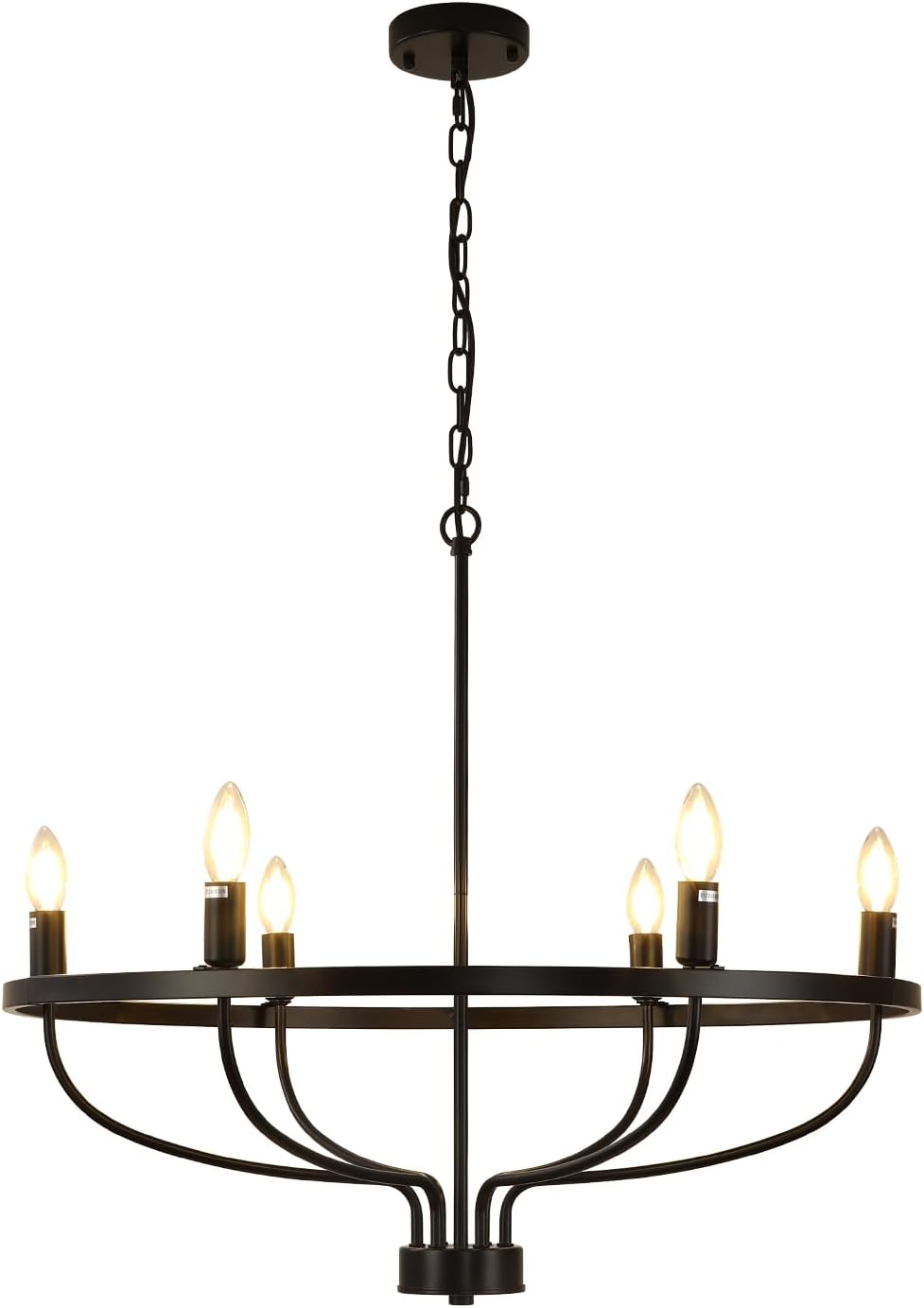 DescriptionPendant light is an integral part of home decor, providing not only essential lighting, but also adding a beautiful visual effect to the room. In the living room, an atmospheric pendant light can bring a sense of elegance and nobility to the entire space, while in the bedroom, a soft one creates a warm and comfortable atmosphere for your resting environment. On any occasion, it can add more goodness to life.DetailsStandard Lamp Holder: With a standard E12 lamp holder, it is compatible with various E26 bulbs to facilitate the replacement of bulbs.High-temperature Baking Process: Its surface has undergone a refined high-temperature lacquer process that offers unparalleled protection against rust and corrosion, thus enabling it to find a home in a myriad of diverse installation environments, and expanding its versatility to unprecedented heights.ApplicationIt is suitable for a kitchen island, dining room, entryway, stairway, cafe, club, bar, restaurant, and library of 107.6-215ft². It is compatible with a variety of Edison, CFL, or LED light bulbs, and is compatible with different types of ceiling designs, such as arched ceilings, sloping ceilings, and flat ceilings.SpecificationColor: BlackMaterial: IronStyle: Modern, IndustrialSurface Treatment: High-temperature Baking PaintVoltage: AC 110V-120VSingle Bulb Power: Max. 60WLight Source: 6* E12 Bulbs (Not Included)Efficiency: EMount Type: Ceiling MountApplicable Area: 10-20m²/107.6-215ft²Indoor/Outdoor Usage: IndoorType: American StandardPackage Including1* Pendant Light