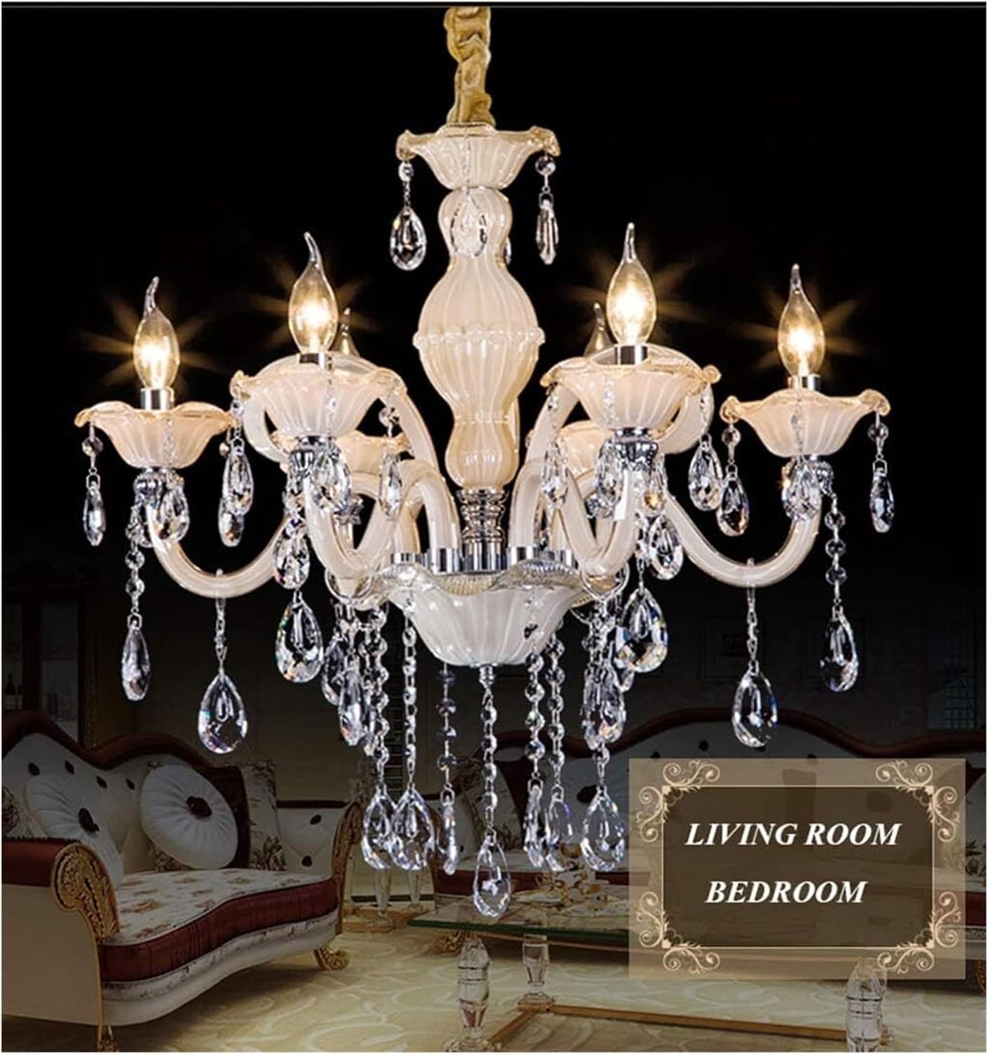 Product Name: ChandelierProduct Color: As ShownProduct Size: As ShownWhether to Include the Light Source: NoIrradiation Area: 8-20 Square MetersApplicable Style: Modern Application: Living Room, Dining Room, Aisle, Bedroom, Balcony, Bar, Etc.