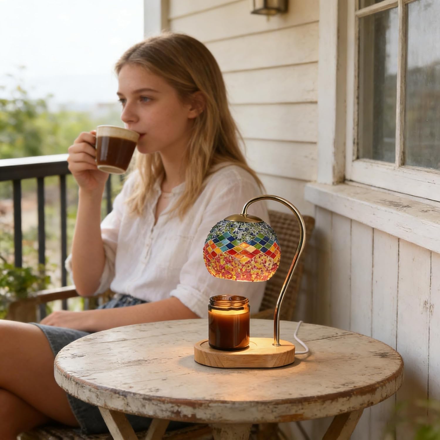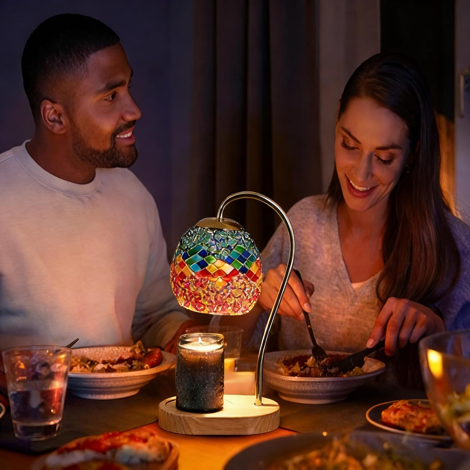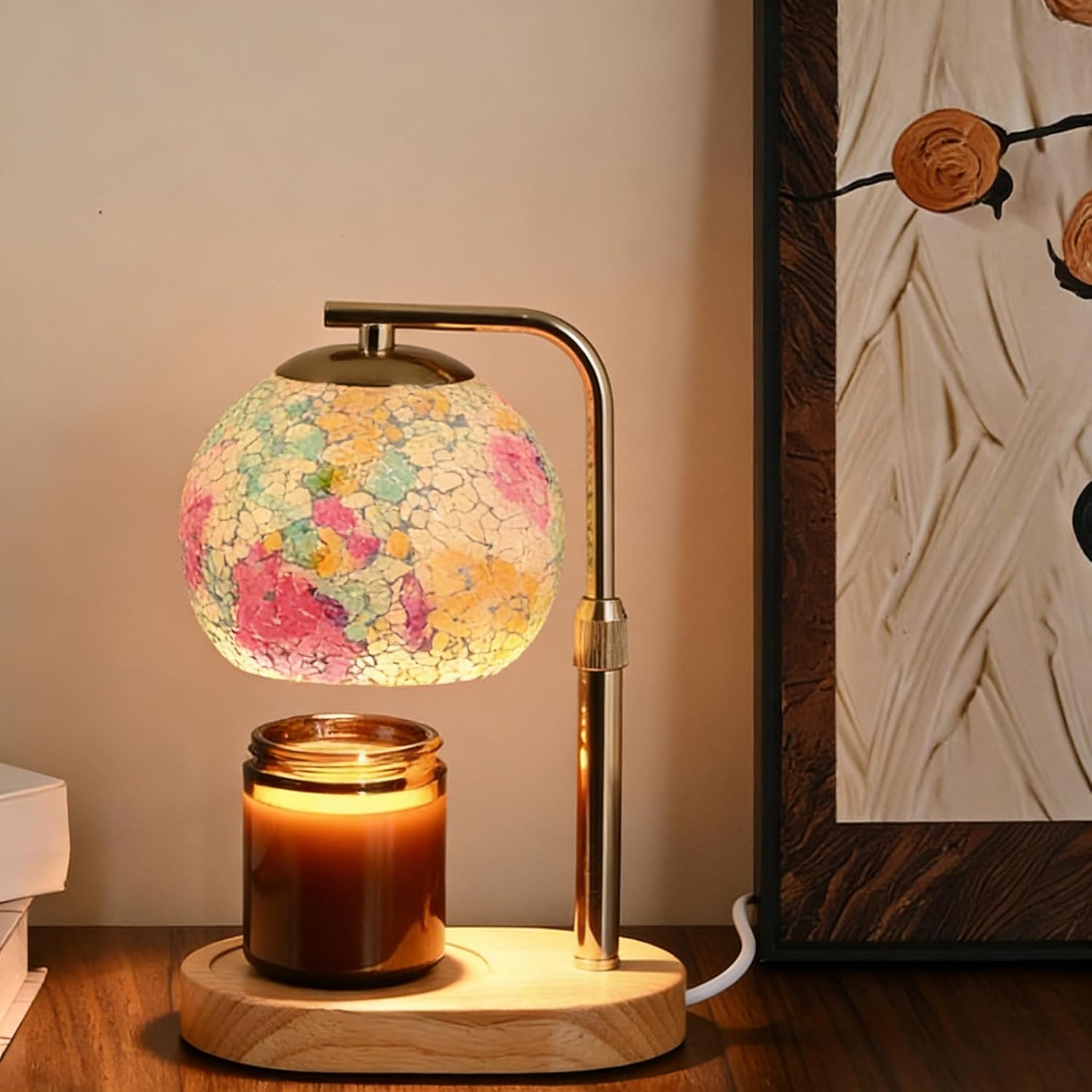A Symphony of Light & DesignAt the heart of its design lies a breathtaking mosaic-patterned glass globe, which diffuses light into a kaleidoscope of soft, warm colors. It’s not just a lamp; it’s a conversation-starting home accent that adds character to your bedside table, office desk, kitchen counter, or living room shelf.Smarter Safer Candle EnjoymentSay goodbye to open flames, soot, and unevenly burned candles. Our innovative top-down warming technology gently melts the wax of your favorite scented jar candles, releasing their full fragrance consistently and efficiently.(Please Note: Scented Jar Candles are NOT included.)