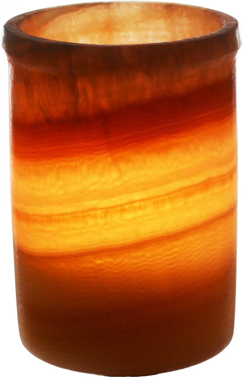 This Alabaster vase is manufactured by hand, using alabaster from every commercial quarry in Egypt. Alabaster is a natural, translucent marble which can vary in color from a clear lemon color to a rich shade of mango orange or even a very light cafe au lait. Each piece will be unique and variation in color from the photo should not be considered a flaw