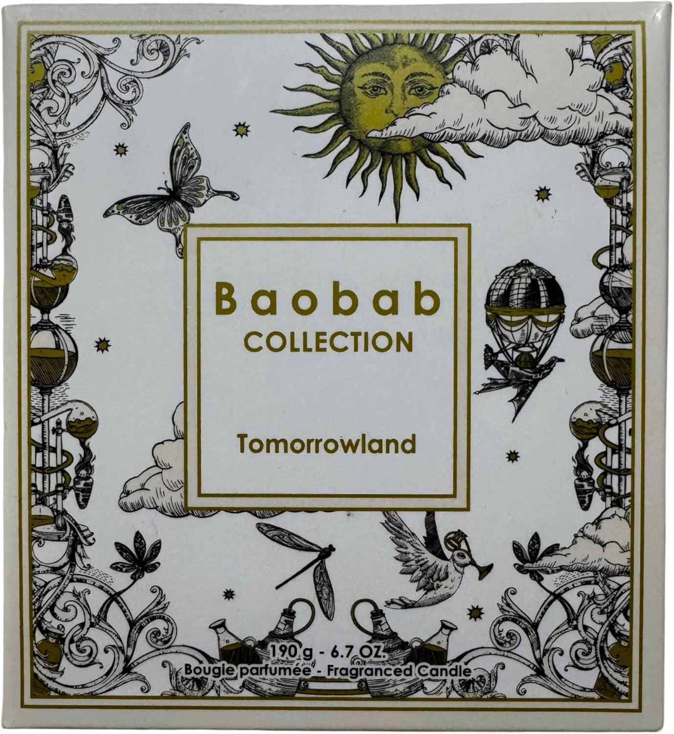 Transport yourself to a world of enchantment with the Baobab Collection's Tomorrowland scented candle from the My First Baobab collection. This exquisite piece features delicate 19th century-inspired screen-printed designs, where whimsical butterflies and hot-air balloons dance across the glass surface, creating an ethereal atmosphere. The fragrance is a dreamy composition that captures the essence of springtime, harmoniously blending fresh pear notes with delicate lily of the valley and earthy moss undertones. Drawing inspiration from the legendary festival grounds of Flanders, this sophisticated scent evokes memories of freshly cut spring grass and creates an ambiance of pure magic. The candle comes beautifully presented in a decorative glass vessel adorned with golden accents, making it both a stunning decorative piece and an aromatic treasure. Perfect for creating an enchanting atmosphere in any room, this 6.7 oz candle combines artistry and fragrance in a way that only Baobab Collection can achieve.
