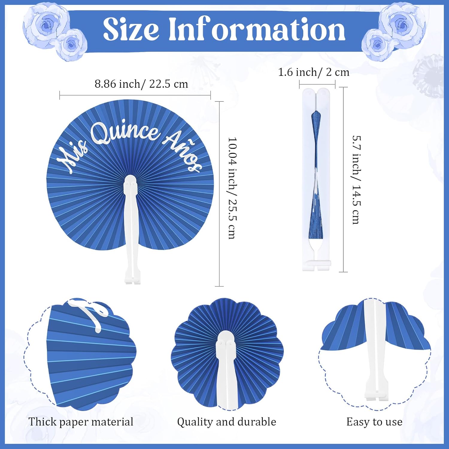 Features: Photo-Ready Details: these colorful round fans not only keep guests cool but also double as fun photo props, adding a playful yet coordinated element to party pictures — they help capture the joy of your celebration in every snapshot. Effortless Assembly: no complicated prep required — each fan comes ready to use, and the pre-punched tags and easy-to-fill bags make setup a breeze. Spend less time organizing and more time enjoying the special moments with your loved ones. Specifications: Material: paper, plastic Color: blue Size: fan 8.86 x 10.04 inches, tags 1.97 inches in diameter Package includes: 50 Round paper fans, 50 themed tags, and 50 sheer organza bags Notes: Manual measurement, please allow slight errors on size. The color may exist a slight difference due to different screen displays.