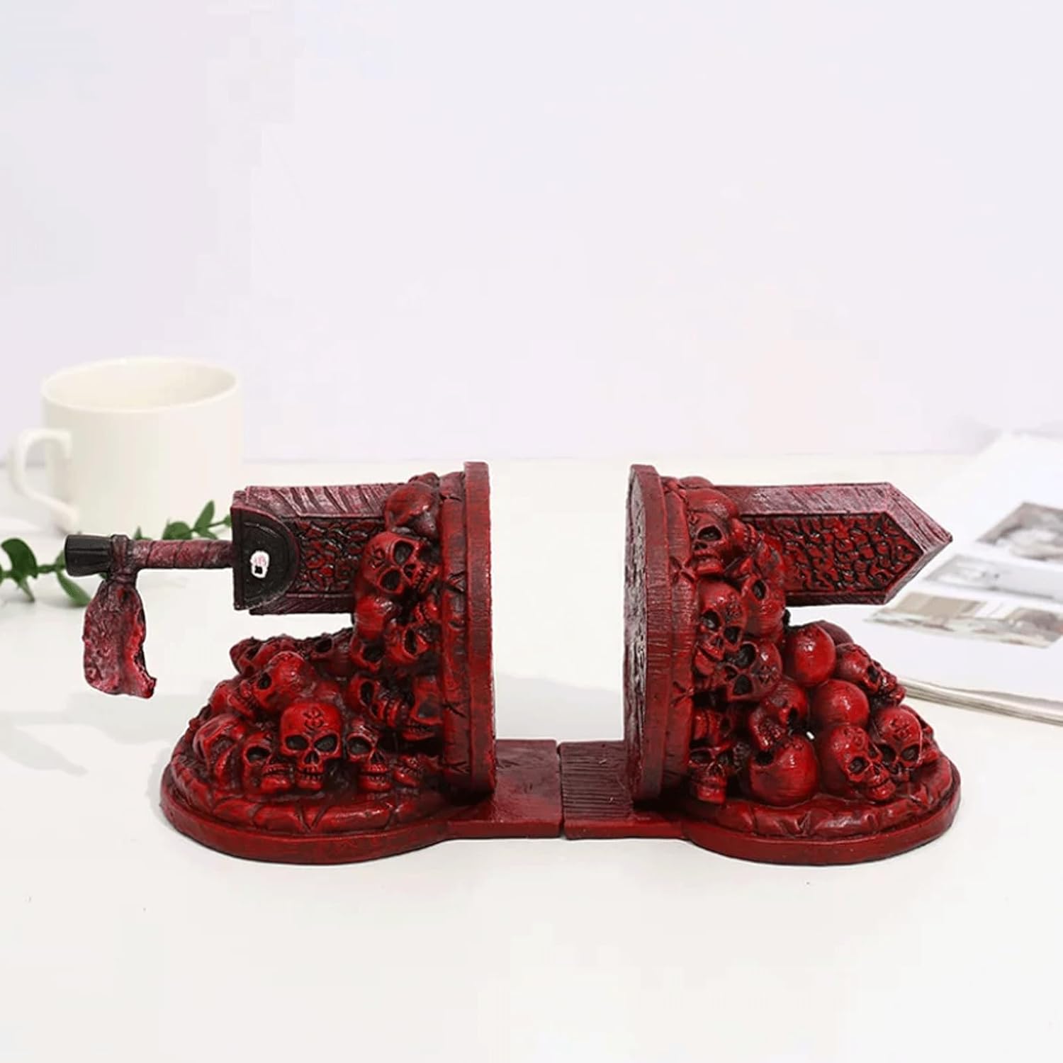 If your home decor can use little additions of flair, use this book ends. They can be placed in the office, living room, or on the bedroom nightstandIntroducing the dragon slayer bookends in red - the perfect blend of Italian, European, minimalistic, and modern styles! Made from high-quality resin, this set of bookends is not only stylish but also durable.With dimensions of 25x8.5x8cm (9.1"x3.5"x3.5"), these bookends are the ideal size to support your favorite books in a unique and eye-catching way. The red color adds a touch of elegance to any space, whether it's in your home, office, study, living room, bedroom, or commercial establishment.To keep these bookends looking their best, simply wipe them clean with a soft cloth. These fun, heavy-duty bookends are not just practical but also make a statement as a decorative piece. Say goodbye to boring old bookends and add a touch of sophistication to your bookshelf with these vintage-inspired, unique bookends.Enhance the look of your book collection with these modern bookends that not only hold your books in place but also serve as a stylish decor piece. Don't settle for ordinary book holders when you can display your books in style with these heavy duty bookends!Key Features:- 1 pair berserk bookends- Made from high-quality resin- Stylish red color- Dimensions: 25x8.5x8cm (9.1"x3.5"x3.5")- Suitable for home, office, study, living room, bedroom, and moreElevate your bookshelf with these decorative and unique bookends that are sure to catch the eye of anyone who sees them. Add a touch of sophistication to your space with these modern, heavy-duty bookends that combine style and functionality effortlessly. Revamp your book display with these Non-Skid Bookend for Shelves today!