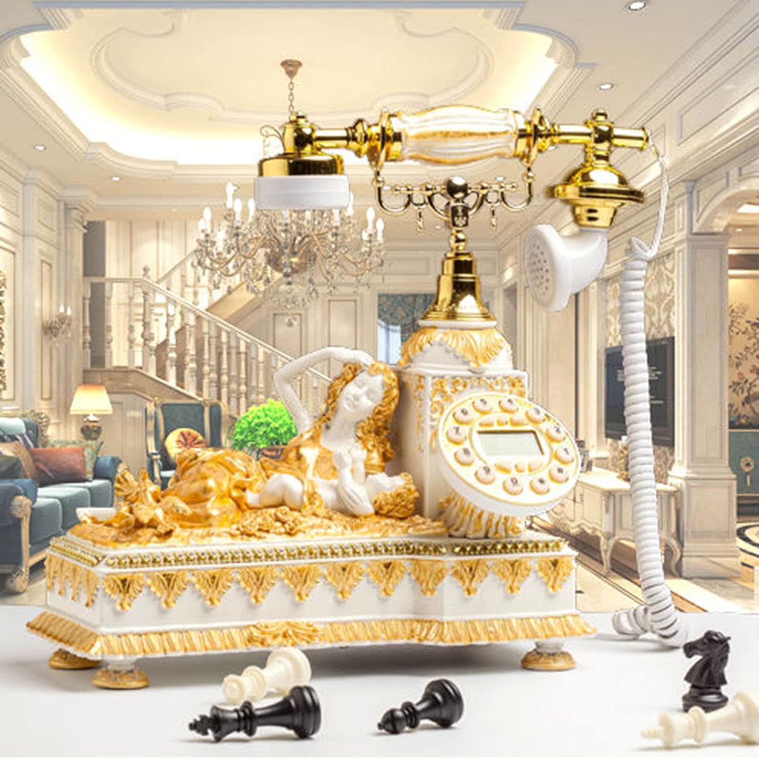 The resin stamper is polished, electroplated and gold painted, which ensures the anticorrosion, quality and safety of the electroplating color. The whole telephone has fine craftsmanship, stable and unassuming, the call quality is clear and no noise, the handset is heavy and strong, and it is full of wealth and style. Features: Caller ID Redial Call history query Specification: Product Name: Home Landline Phone Material: Metal+Resin Style: Vintage Use Range: gifts, living room, bedroom bedside, study, hotel, home store, etc. Packing including: 1 x 1 x Telephone handle 1 x Telephone line 1 x Product Manual Note: 1. Please allow 1-3 cm error due to manual measurement. Thanks for your understanding. 2. Monitors are not calibrated same, item color displayed in photos may be showing slightly different from the real object. Please take the real one as standard.