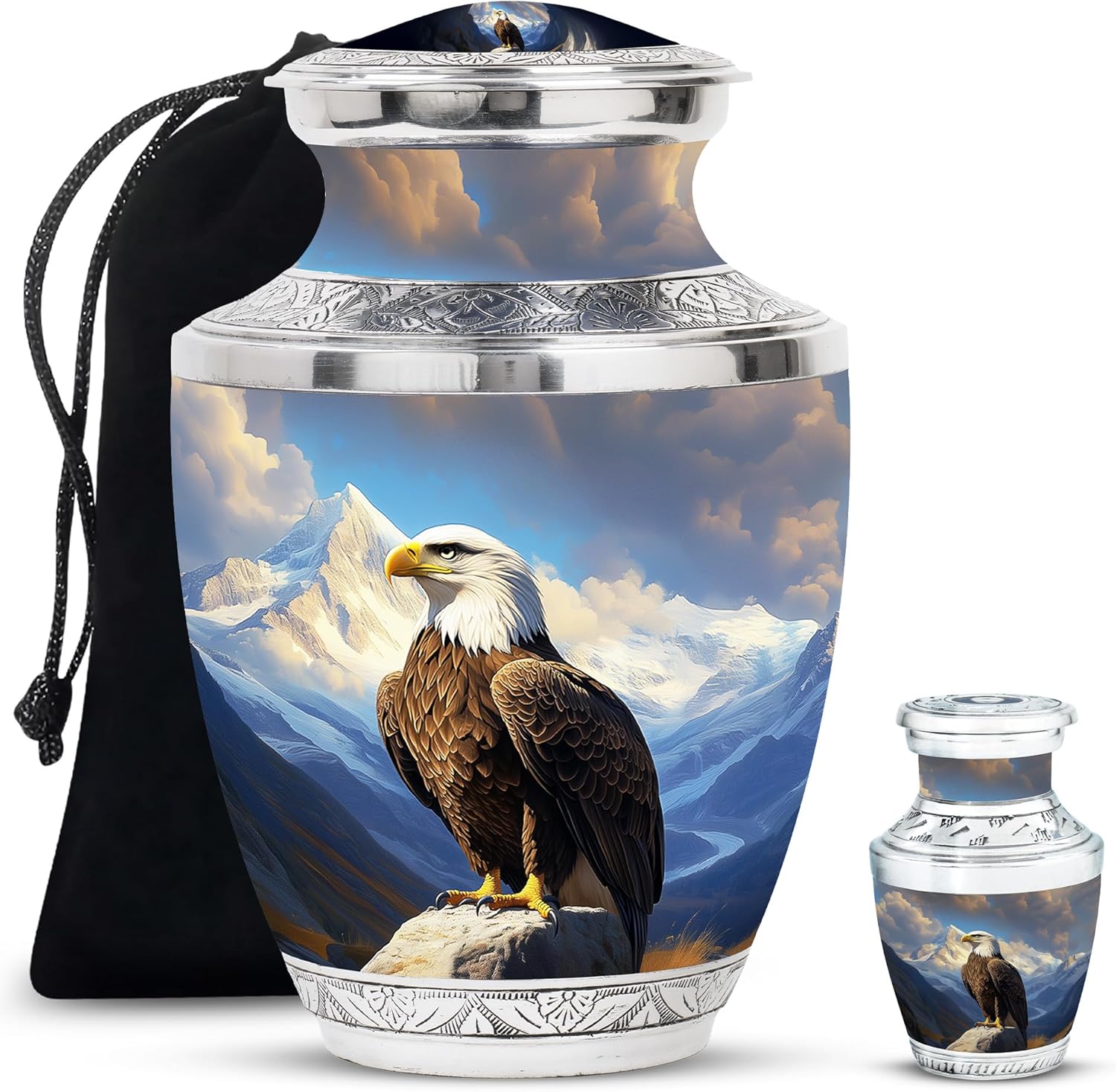 Cowboy Urn is a large cremation urn for human ashes, featuring a western cowboy riding into a dramatic sunset, symbolizing freedom, adventure, and the journey beyond. Crafted from durable metal, this urn holds up to 220 lbs of ashes, making it ideal for adult men. The rich western artwork, deep sunset tones, and engraved silver accents create a timeless and meaningful tribute. Whether displayed at home or used for burial, this urn provides a secure and dignified final resting place. The threaded lid ensures ashes remain safely enclosed, making this urn a lasting and heartfelt memorial.