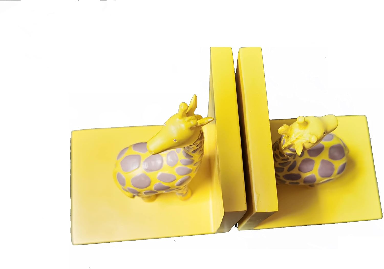 This is a really nice heavy duty steady giraffe bookends . Its Net weight is 4.4 LB. It is in 3d fashion . The color of is very bright . It is highly recommend for babies , toddler children room decorative bookends . It matches the giraffe animal themed nursery very well. Baby , Toddler , Kids Children Gift Idea .