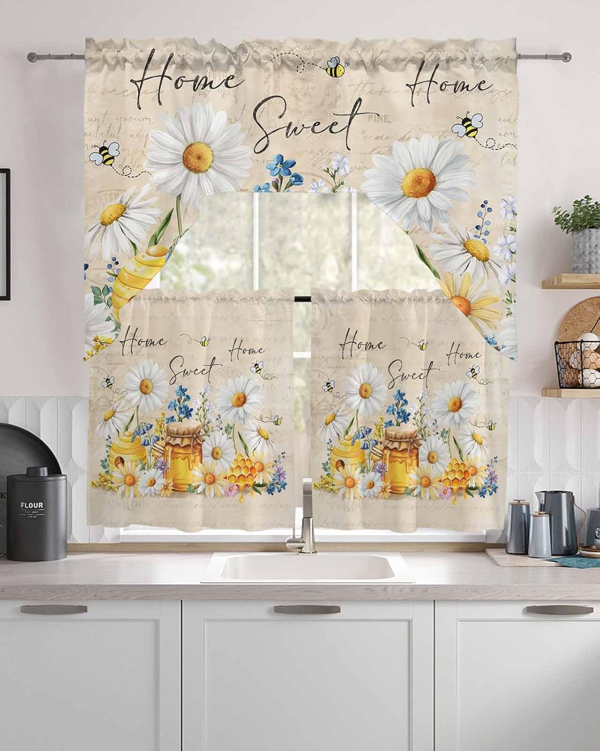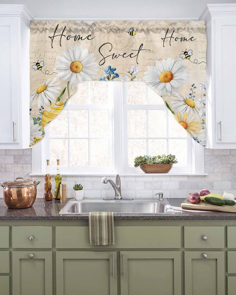 Looking for ways to beautify your kitchen Love farmhouse decor, rustic decor, vintage decor, or rustic decor Still need to bargain Onekaccu Design 3-piece kitchen curtains and valance set will add color to any kitchen or dining room, new or old QUALITY FABRIC:Polyester blended textured fabric is soft, breathable, durability and long-lasting, with premium stitching. Let the tier swag curtains set in the breeze without any stuffy feeling. COMPLETE KITCHEN CURTAIN SET: Update the of your kitchen with the beautiful rod pocket kitchen curtain set with swag valance. Show your personality and style it with your kitchen decor personality When working in the kitchen, use tier curtains with swag that match your decor to prevent glare from light hitting the glass. Choose one that suits your windows, with thousands of different colors and patterns available. With its polyester construction and stitching, it maintains the same elegance for a long time.FUNCTIONAL FOR MULTIPLE OCCASION USE: These soft and smooth farmhouse kitchen curtains tier & swag valance set are not only nice looking, yet still breathable, airy, and feel look to your home space. Easy and Comfortable to hang & will be your new favorite item in your house EASY HANGING: slide the rod pocket through a standard rod.Short valance curtains and kitchen curtain tier are not only suitable for kitchen window sinks, but are also the perfect addition to your bedroom window, bathroom or bay window, laundry room, attic, basement, cabinets, RV or camper. Elegantly frames windows and pairs perfectly with styles such as farmhouse, country, coastal, modern, vintage and more. EASY CARE FORMachine wash on cold cycle, using mild detergent. Do not bleach. Tumble dry on low heat. Warm iron or steam clean if necessary. 3pc kitchen curtain tier swag valance set will stay like new