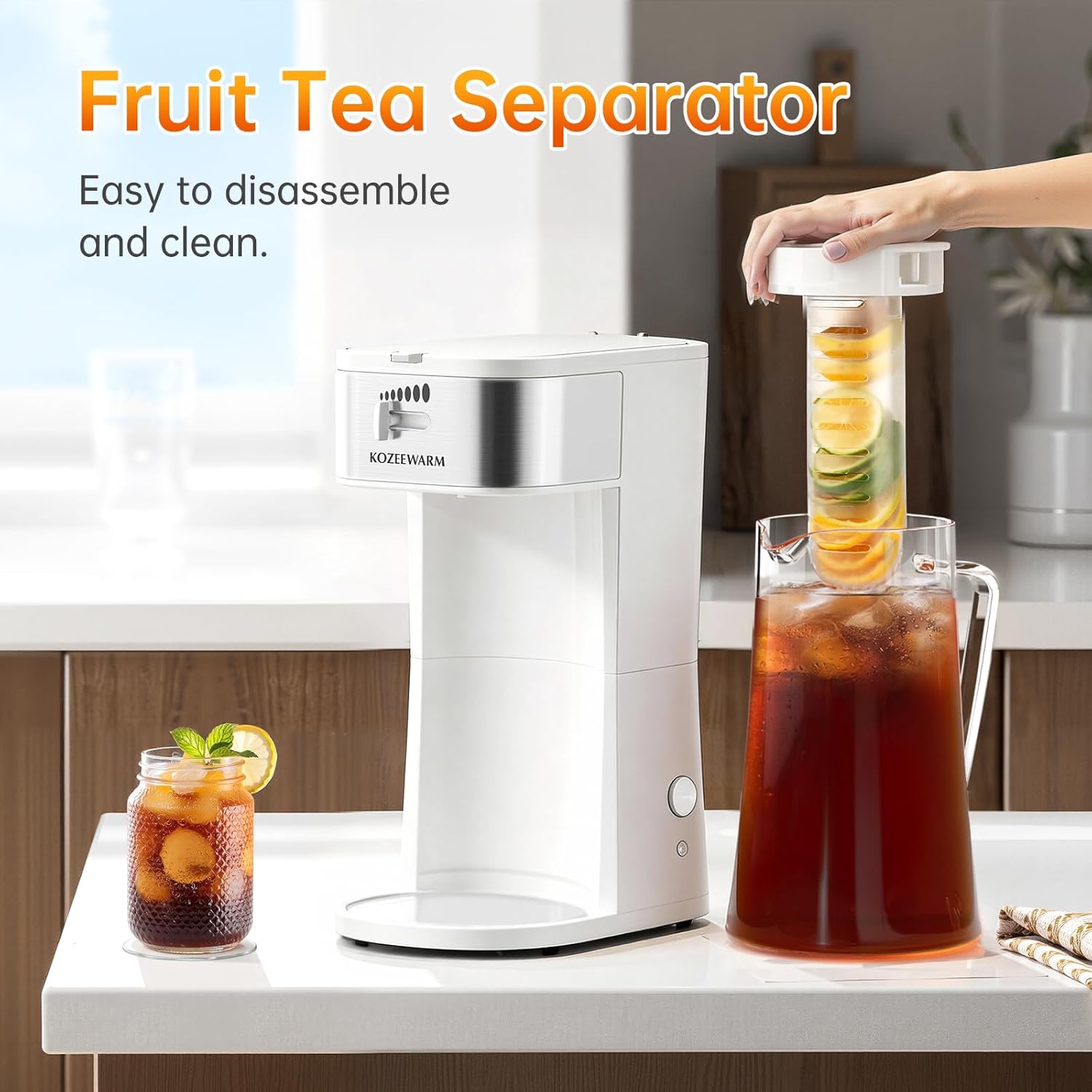 CAFÉ QUALITY: Brew a variety of iced coffee, iced lattes, iced tea, and more with this iced tea brewing system!3 QUART PITCHER: Includes a 3 QT. double insulated durable pitcher with a two-position lid for pouring and closing.FAST BREWING: Brews directly into the pitcher and is ready in less than 10 minutes. The steepingSTEEPING BASKET: Steeping basket holds coffee grounds, tea bags, and tea leaves for your choice of iced beverage.HOW TO BREW: Use pitcher to measure your water, then pour the water into the water reservoir. Add ice to your pitcher, add tea bags, leaves, or coffee grounds to the steeping basket with a paper filter, and press the on button.FITS ANYWHERE: Slim design fits in tight spaces and is easy to store.AUTO SHUT-OFF: Automatic shutoff feature when brewing has finished