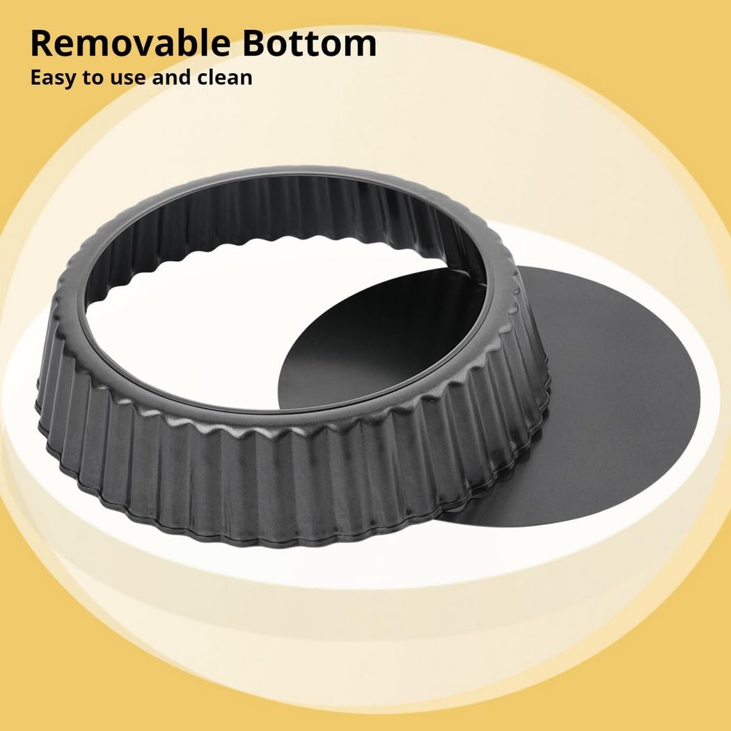 Color: black Material: carbon steel Size: 9.45*8.27*2.05''/24*21*5.2 cm Package Includes: 2 x tart pan Note: - Please refer to the measurement. Tiny measuring error is allowable in normal range. - There might be a little color difference due to the monitor, camera or other factors, please refer to the physical item.