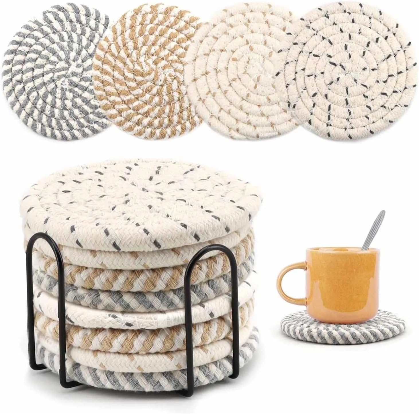 Material: polyester cottonColor: SolidShape : RoundQuantity : 8pcsDiameter 11cm