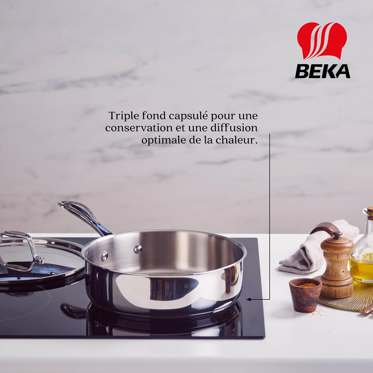 Product Description The Bekaline 12065264 Head Jig is made of stainless steel. It comes with lid and can be used with all lights including induction. It comes as a set of 10 and has the capacity up to 3.2 L. Dishwasher safe. Set Contains: 1 x 24cm Stainless Steel Saute Pan with Lid