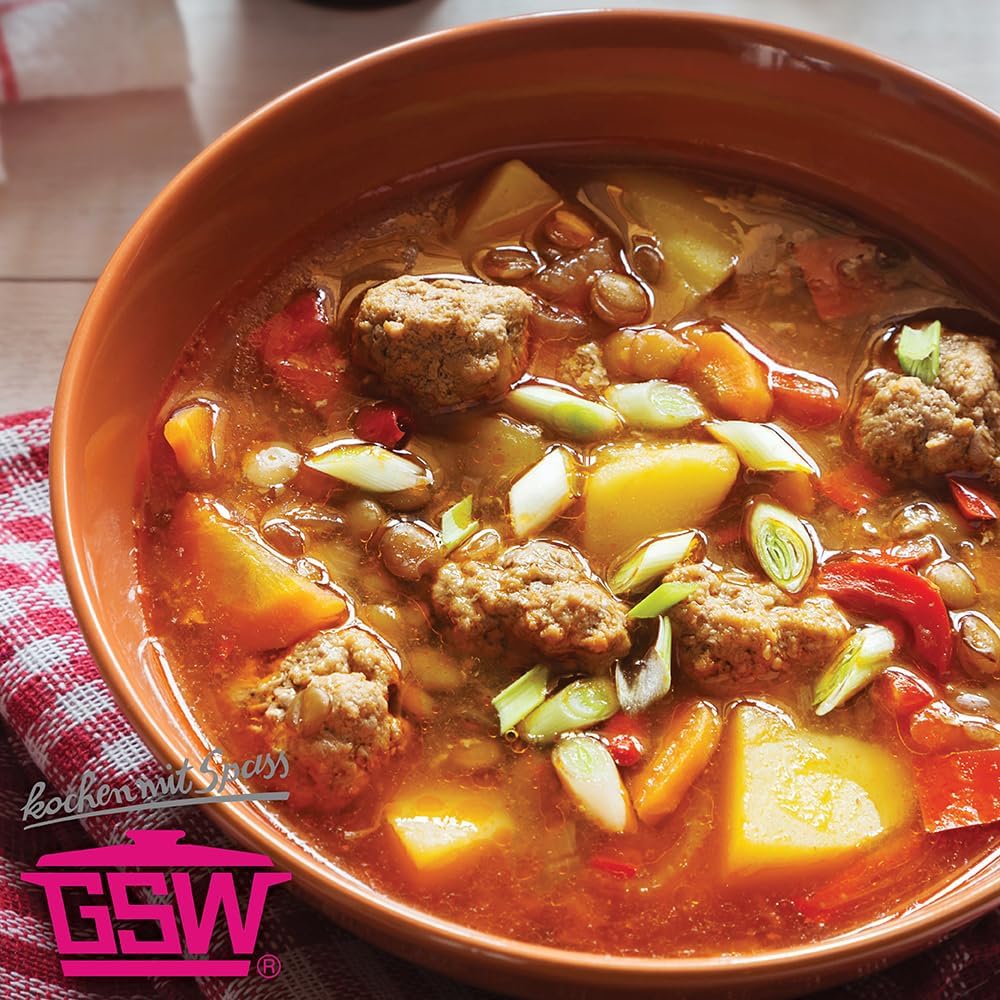 GSW serving pan is made of stainless steel. Handy cold metal handles. Energy saving capsule base. Can be safely used in the electro, gas, induction, oven and dishwasher safe. Suitable for oven up to 240 degree Celsius.