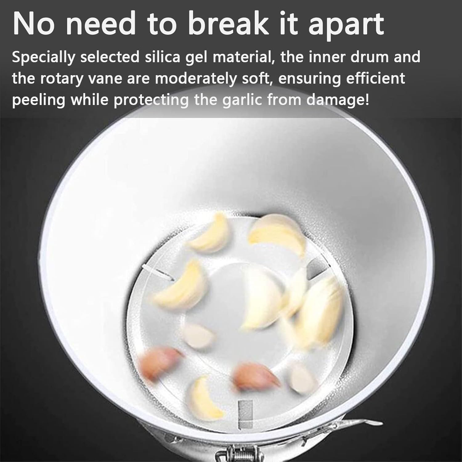 It is mainly suitable for dry garlic. The drier the garlic, the better the effect. Ideal for commercial purposes such as restaurants, cafeterias, barbecues, hotels, chinese restaurants, etc. FEATURES:1. High-power motor, high power, fast garlic production.2. Thickened stainless steel body, corrosion-resistant, sturdy and durable.3. Whole garlic peeling and separating machine with fast peeling speed.PRODUCT INFORMATION:Product name: Electric peeling machineMaterial: Stainless steelProduct weight: 8.5kgPeeling speed: 20kg/hStripping rate: 95%Product size: 240×240×480mmMotor power: 200wPACKING LIST:1×Garlic peeling machineKIND TIPS:A garlic machine can only remove dried garlic, it will be better if it is cut into particles and dried in the sunThe peeling rate of red garlic/purple garlic/garlic is low, please buy with cautionWet fresh garlic cannot be peeledPRECAUTIONS FOR USE:1. Before starting the machine, carefully check whether there are any debris in the peeling barrel.2. Make sure the machine cover is locked.3. Put the garlic to be peeled into the funnel, preferably with the stems removed.4. Before cleaning and disassembly, first disconnect the power supply and stop the machine.5. During processing, please do not press the switch with wet hands.If you have any questions, please feel free to contact us. We will reply to your message within 24 hours