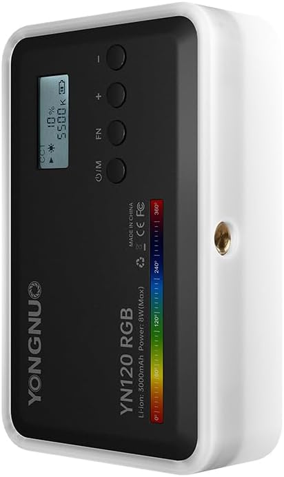 YONGNUO YN120RGB LED Mini Lights, Camera Video Light 360 Full Color Portable Photography Lighting with 3 Cold Shoe, 3000mAh 8W Rechargeable CRI 95+ 2500-9900K Color Tempreature