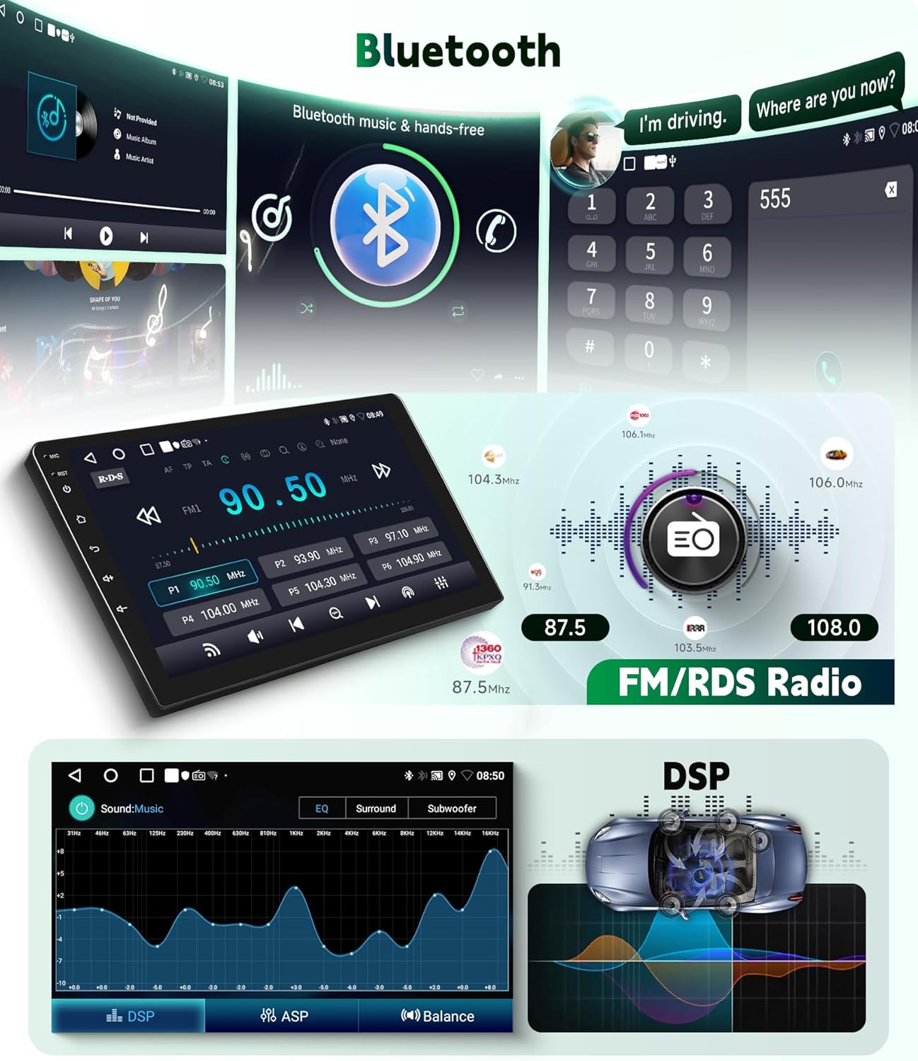 | Additional Features | 4Core 2G RAM+64G ROM, DSP, FM/RDS Radio, GPS/Wifi, Wireless Carplay Android Auto |