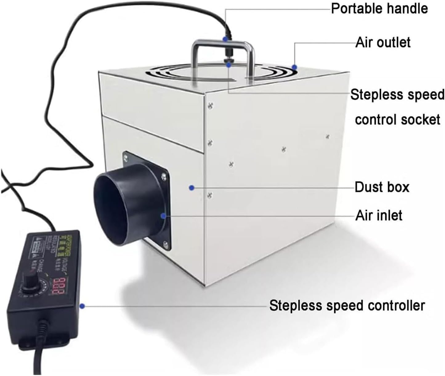 Welcome! Wish you a happy shopping~ Product specifications: Product name: Filter-type engraving vacuum cleaner Voltage: 110-220V Product speed: 5000 rpm Stepless speed regulation: flexible adjustment of suction force Product power: 120W Product material: iron Storage capacity: about 3450 ml Sound decibel: 78~110 decibels Tube diameter: about 7 cm Filter size: about 18x17.4x2cm Dust box size: about 19.8x18.6x17.6cm Weight: about 3.2kg Packing list: Host*1