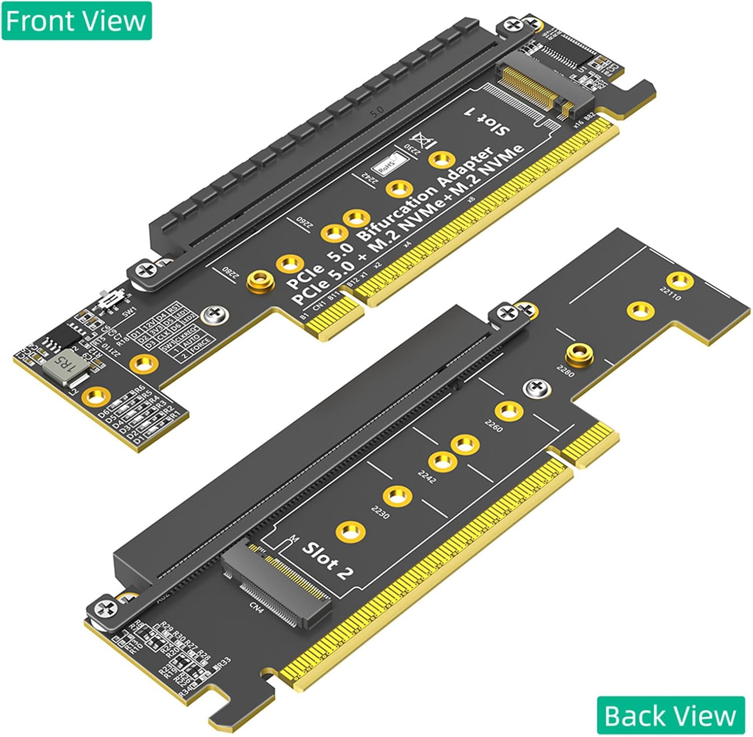 Features: Supporting the latest PCIe 5.0 standard, this adapter enables fast data transfer speeds of up to 32Gbps and double NVMe hdds installation for enhances in high speed computing and gaming applications. with PCB materials for superior conductivity and durability, along with efficient heat dissipation structure, it reduces operating temperatures and ensures long stability and . for gamers, professional graphics designers, and IT enthusiasts who require high components for demanding tasks in environments like gaming rigs or workstations. Perfect for scenarios such as 4K video editing, large game loading, or scientific computations in high load setups like servers or workstations, providing swifts response and smooth operations. With advanced antiinterference circuitry and double NVMe hdds , this PCIe 5.0 adapter delivers consistent, high reliability , boosting efficiency for intensive applications without signals degradation. Specifications: Materials: PCB Color: Black Note: Please allow 0-1cm error due to manual measurement. make sure you not mind before bid. Due to the differences between different monitors, the Pictures may not reflect the actual of the item. Package includes: 1PC PCIExpress 16X Adapter Card