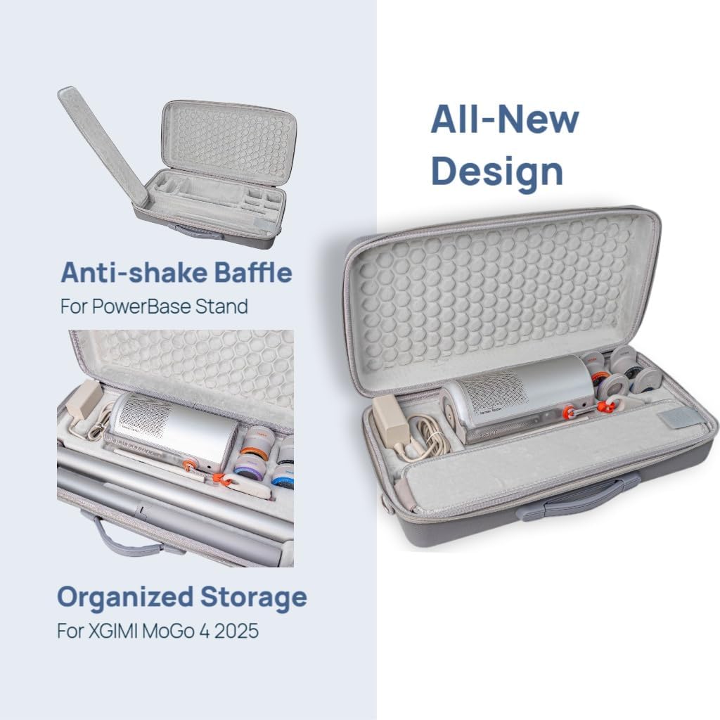 | Pocket Description | Separate compartments for projector, power adapter, cables, sunset filter, and remote control with mesh pockets |