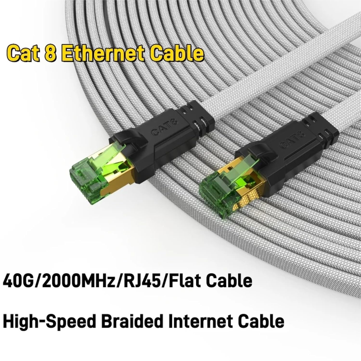 Up to 100ft Cat8 Flat Network Cable 40Gbps RJ45 Internet LAN Cable Patch Cord for Modem Router Gaming PC XboxVersion: CAT-8Resolution: 2000MHBandwidth: 40GbpsMaterial: Nylon braid /Flat cable/ gold plated plugCable Type : Cat8Model Number : CAT-8Product Name : Cat 8 Ethernet CableTransmission : 40GbpsBandwidth : 2000MHzWire Core : 26AWG Bare Copper