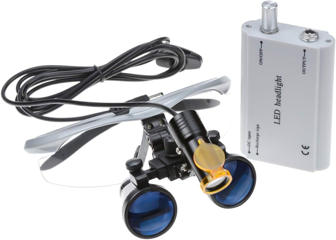 Specification of headlamps Light:3W Intensity:15000-30000lux Colour temperature:6000K The lifetime of the lamp:100000 h Continuous runtime:4 h Voltage: AC100-240V/50-60HZ Battery:Lithium battery The brightness can be adjusted 4 Color for your choice: Blue Red Silver Black Light spot shape:Clear Circle Net weight: 295g(Battery--90g Light Source--46g Specification: Magnification: 3.5X Working distance: 420mm Depth of field: 80mm Field of view: 60mm Weight: 52g Packlist: 1. LED headlights: 1 per 2.3,5X Magnifier: is 1 3. Other accessories