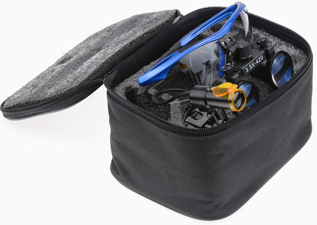 Specification of headlamps Light:3W Intensity:15000-30000lux Colour temperature:6000K The lifetime of the lamp:100000 h Continuous runtime:4 h Voltage: AC100-240V/50-60HZ Battery:Lithium battery The brightness can be adjusted 4 Color for your choice: Blue Red Silver Black Light spot shape:Clear Circle Net weight: 295g(Battery--90g Light Source--46g Specification: Magnification: 3.5X Working distance: 420mm Depth of field: 80mm Field of view: 60mm Weight: 52g Packlist: 1. LED headlights: 1 per 2.3,5X Magnifier: is 1 3. Other accessories