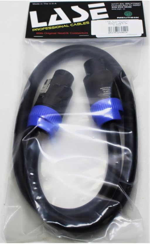 LASE 4 Ft Speakon to Speakon PA Speaker Cable w/ NEUTRIK NL4FC 12ga 8 Conductor Pure Copper Wire With Original Neutrik Connectors. Made In USA. Whether you have a permanent installation or mobile, LASE's 4ft Speakon Speaker Cables with original Neutrik connectors are rugged enough to handle whatever you throw at them - road ready and built to last. The quality of the cables you use to connect your sound equipment is critical if you are looking for an accurate music and sound reproduction. Quality speakon speaker cables are very hard to find, especially at a decent price. With your purchase, you will receive a speakon speaker cable that's pictured and described above.