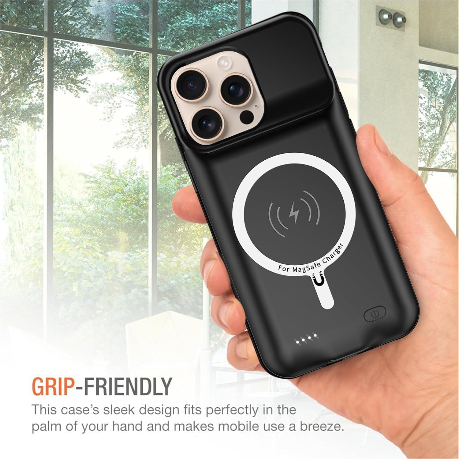 NOTE: * This battery case is only compatible for iPhone 16 Pro Max (6.9 inch), not compatible for other models and sizes. Headphone compatible Apple AirPods Other bluetooth headset Sync &Charging Advanced Sync-through Technology Support Lightning Cable Full Support with iOS versions Max protection Unique raised bezel design High quality elastic soft material How to use? Step 1.Please fully charge the battery case before using the product. Step 2. When you want to charge your phone through the battery case, make sure the phone is tightly closed at the bottom of the case, then press the power button for about 3 seconds to start charging. Step 3. When you want to stop the battery case to charge the phone, press the power button for about 3 seconds, it will stop charging. Specification: Battery type: Lithium-polymer Material: TPU Rubber Capacity: 12000 mAh Working Temperature: 0℃-45℃ Input: DC5V/2.0A Output: DC5V/1.0A Include: *1x user manual *1x Tempered Glass Screen Protector *1x Charger Cable *1x battery case IMPORTANT NOTES: 1. This battery case is ONLY compatible with iPhone 16 Pro Max 2. 100% support for Apple CarPlay; 3. Support wireless charging function; 4. This battery case is NOT designed for screen protection;