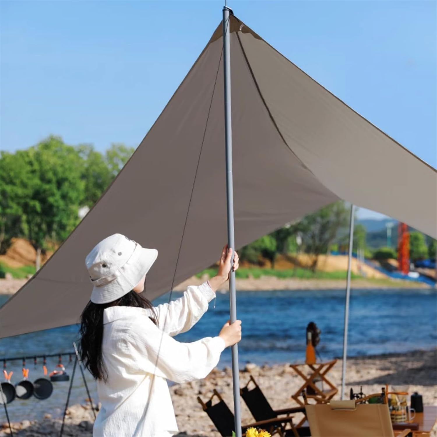 LCBDYLR full blackout octagonal vinyl canopyThe tent has its dimensions optimized making it perfect for various outdoor activities with friends and family. Whether you're planning a camping trip, beach day, picnic or fishing adventure, this roomy tent will provide you with reliable protection from the sun. Rain and sunshine. Made of high-quality materials to ensure long-lasting durability. Additionally, our packages include a complete set of accessories such as tent poles, stakes, guy ropes and hammers to ensure you have a stress-free travel experience.Product Name: Sunscreen CanopyMaterial: 210D Oxford clothColor: apricot beige/khakiCapacity: 8-12 peopleAccessories:240cm alloy canopy pole x2Thick windproof rope x820cm fluorescent floor nails x8PE ground hammer x1Storage bag x1Size: 6x4.2mStorage size: 68x15x15cmWeight: about 4.8kgConsumer reminder: Strictly abide by local government regulations when camping, camp in a civilized manner, camp safely, camp without traces, protect the environment, and care for the ecology.