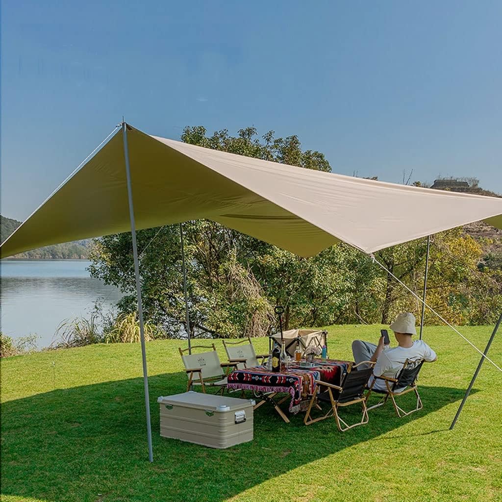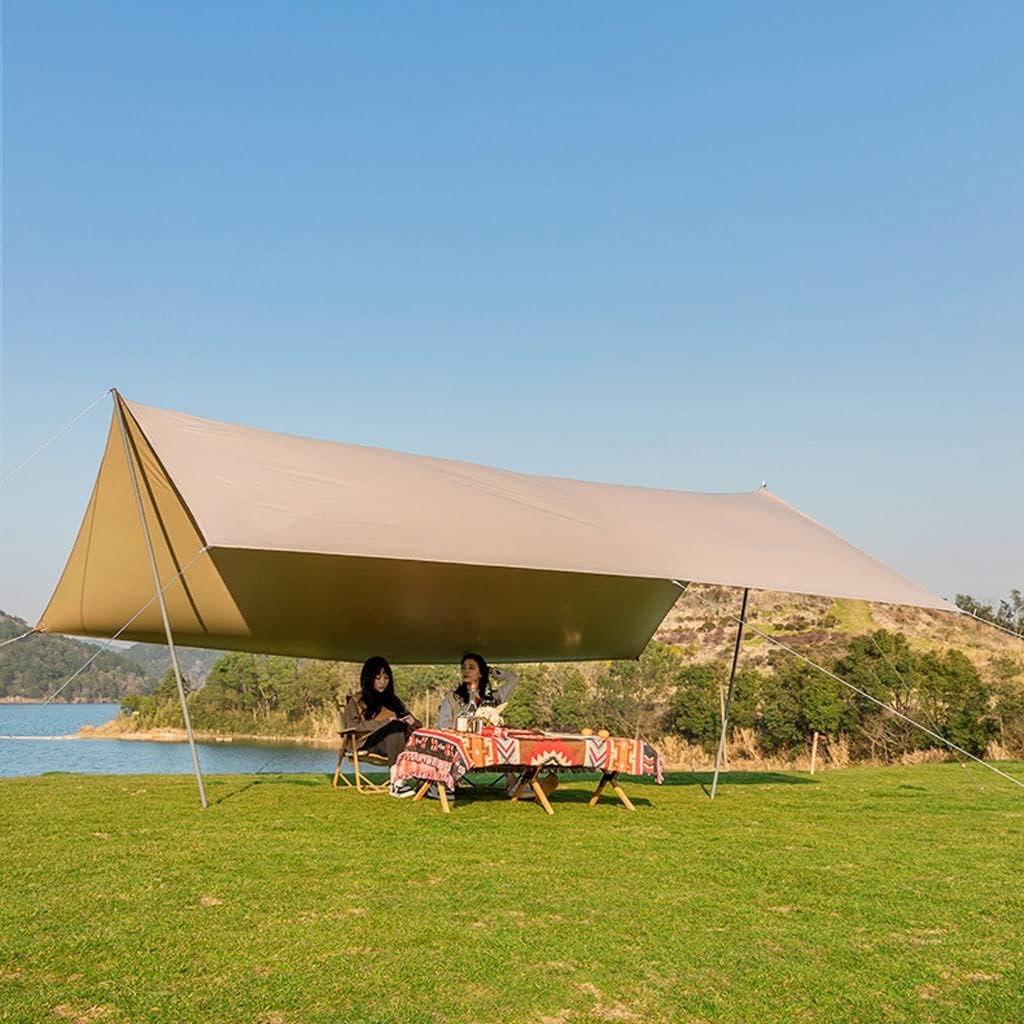 Product Name: Awning TarpsSize: 300*400cm/400*500cm (unfolded); 65*15*15cm (folded)Material: PolyesterWeight: 6.1/7.8 kgPacking list: 2.4m Pole*2, wind rope*8, ground nails*8, storage bag*1
