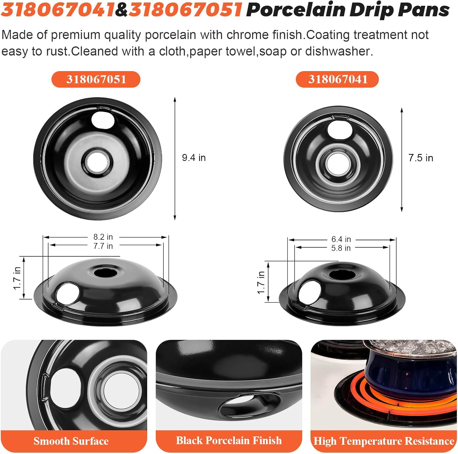 | Included Components | Packing include 2 x 6" 318067041 Porcelain Drip Pan Bowls + 2 x 8" 318067051 Porcelain Drip Pan Bowls + 2 x MP21YA 8" Electric Range Burner Element (2100w 230V) + 2 x MP15YA 6" Electric Range Burner Element (1500w 230V) + 1 x Fish-Scaled Cloth |