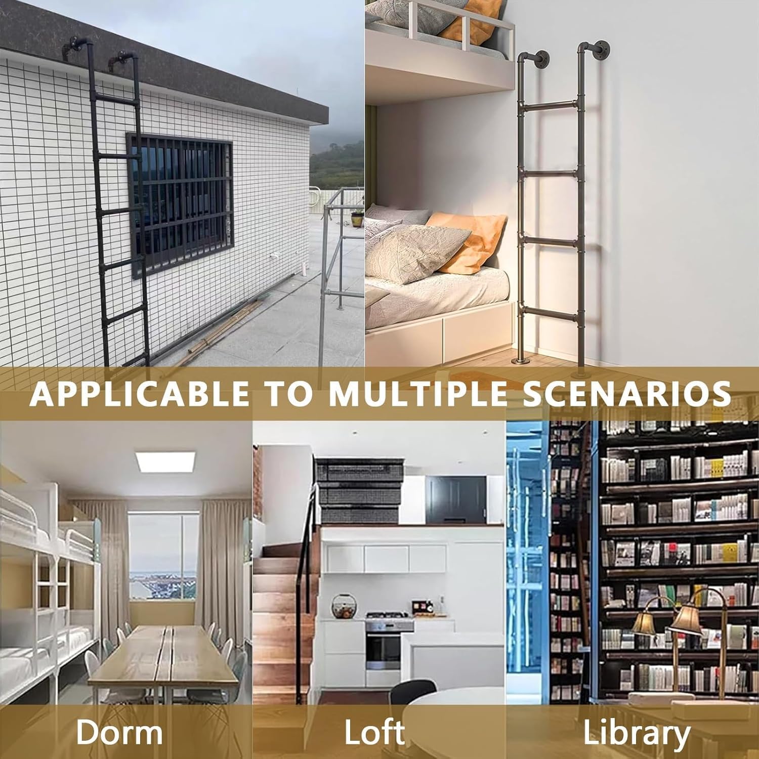 Our metal steps ladder is versatile and durable to keep your family safe, and it's perfectly ergonomically designed to be easy to grip and climb. It's perfect for RVs, school dormitories, children's bedrooms, libraries, offices, and more. Features:Thickened material, stable and durable, safe and reliable.Ladders are quick to install and use.It occupies a small area and can make better use of precious space.Perfect for dorm or bedroom loft bunk beds.Mounting on the edge of a bunk bed allows you to get in and out of bed safer. Notice:1. Measurement: Please measure the height of your bed or the height of the scene you want to use it before purchasing.2. Easy to maintain: Daily cleaning only requires wiping the surface with a clean soft cloth.
