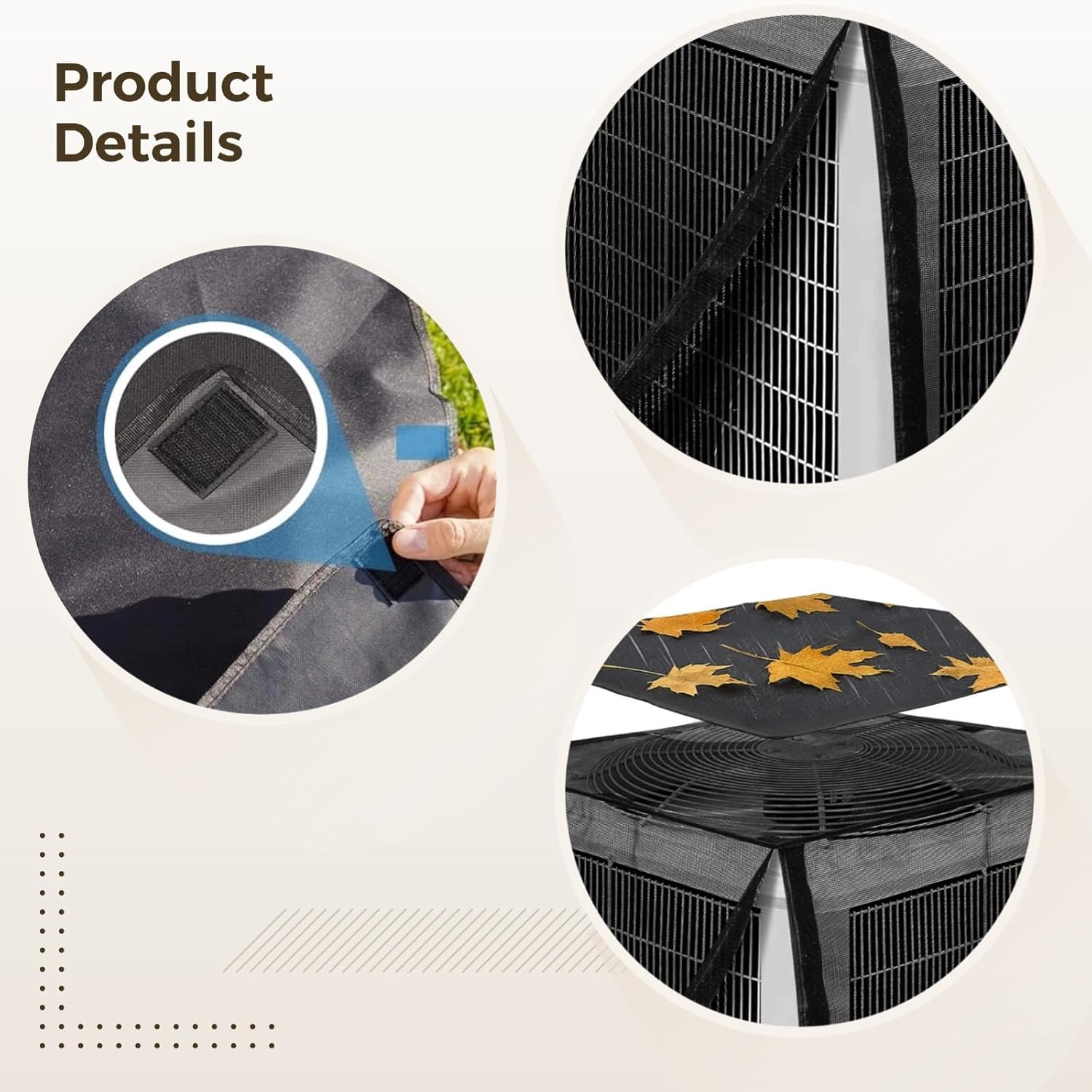 Color:black Material:oxford cloth Product Size: 27.56 in x 27.56 in x 31.5 in Package Includes:ac cover for outside unit x 1 set Note: - Please refer to the measurement. Tiny measuring error is allowable in normal range. - There might be a little color difference due to the monitor, camera or other factors, please refer to the physical item.