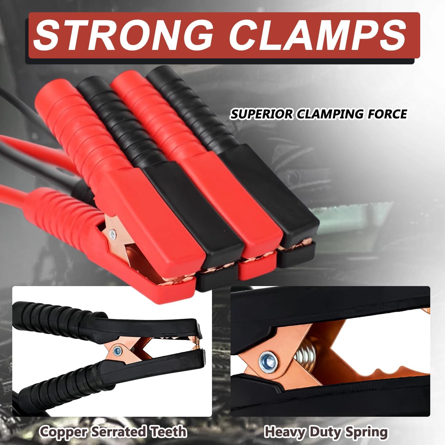 ★【Heavy-Duty Jumper Cables】Heavy duty 0 Gauge with 0.55" cable diameter, this 0 gauge 3000AMP jumper cable is designed to jump-starting dead or weak batteries, will support 3000A peak current for jumping start 12V & 24V car battery.★【Safe & Reliable】Constructed with durable, abrasion-resistant insulation and heavy-duty clamps, our jumper cable will provide a secure connection and safe operation,ensuring durability and reliability★【30FT Extra-long Booster Cables】With a tangle-free 30 Feet length ,our jumper cables provide ample reach between vehicles which ensures to jump the battery of any other car with ease, no matter parked at the rear or front. Comes with zipped carry case with handle for easy storage and transportation.★【Low Temperature Resistance】 This jump start cables work fine even under low temperature conditions, making it ready for the winter season when batteries tend to weaken.★【Versatile Application】 hese heavy-duty jumper cables are a must-have for any vehicle owner,ideal for 6V, 12V and 24V vehicles including cars, vans, trucks, SUVs, even Large Agricultural & Commercial Vehicles. Also suits for 12V batteries and all petrol and diesel engines up to 9500cc.