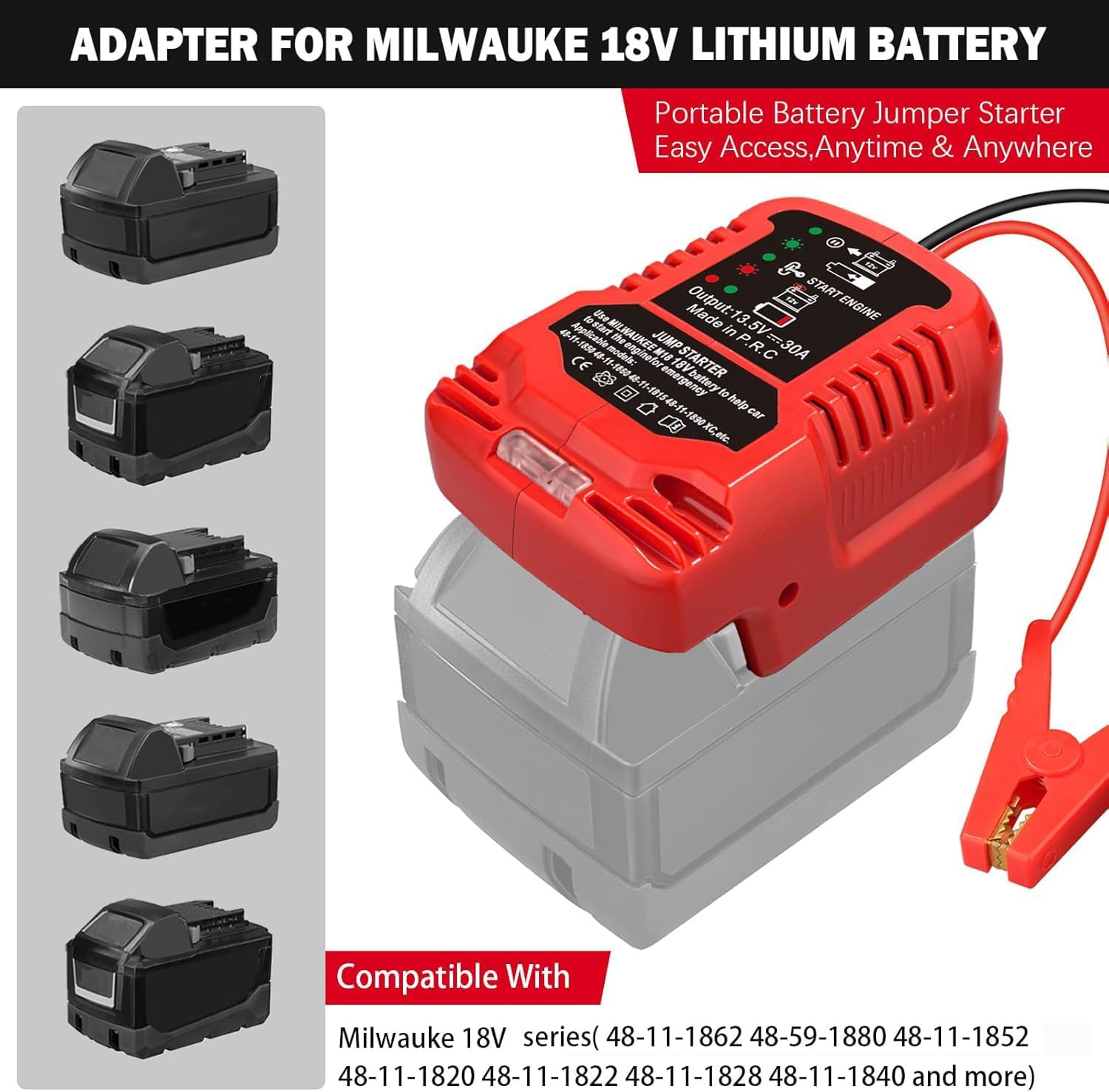 Jumper Start for Milwaukee Battery 18V for M18 Li-ion, Car Jump Starter Cables Adapter for 12V Car Up to 3.5L Gas or 3.5L Diesel Engine, with 11AWG Cable and Clamp Kit (Battery Not Included)