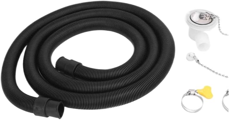RV Sink Drain Connector Hose Kit Stainless Steel Right Angle Drain Adapter Hose Kit for Yacht Sink Motorhomes RVs Accessories This drain connector hose kit is designed for use with RV, yacht, and motorhome sink installations.It includes a right angle drain adapter constructed from ABS and stainless steel materials.The adapter connects to standard sink drain outlets and routes wastewater through a 2-meter flexible hose.Two clamps are included to secure the hose to the adapter and downstream plumbing.The right angle configuration allows installation in confined spaces beneath sinks.The kit is compatible with common RV and marine sink drain configurations.Package includes one sink drain connector, one 2-meter hose, and two clamps.