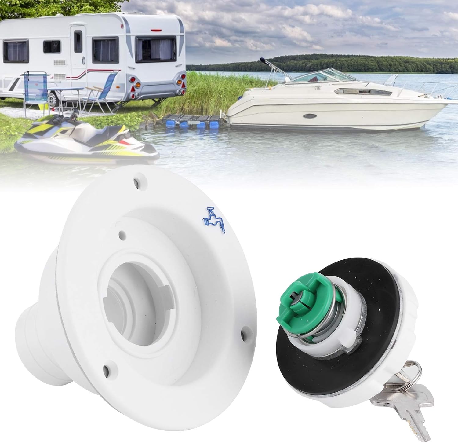 Specification:Conditon: 100% Brand NewItem Type: Water Tank FillMaterial: Plastic PP(Food Grade)Optional Color: Black, WhiteSize: Approx. 11 x 11 x 8cm/4.3 x 4.3 x 3.1inPackage List:1 x Filler 2 x Key3 x Screw