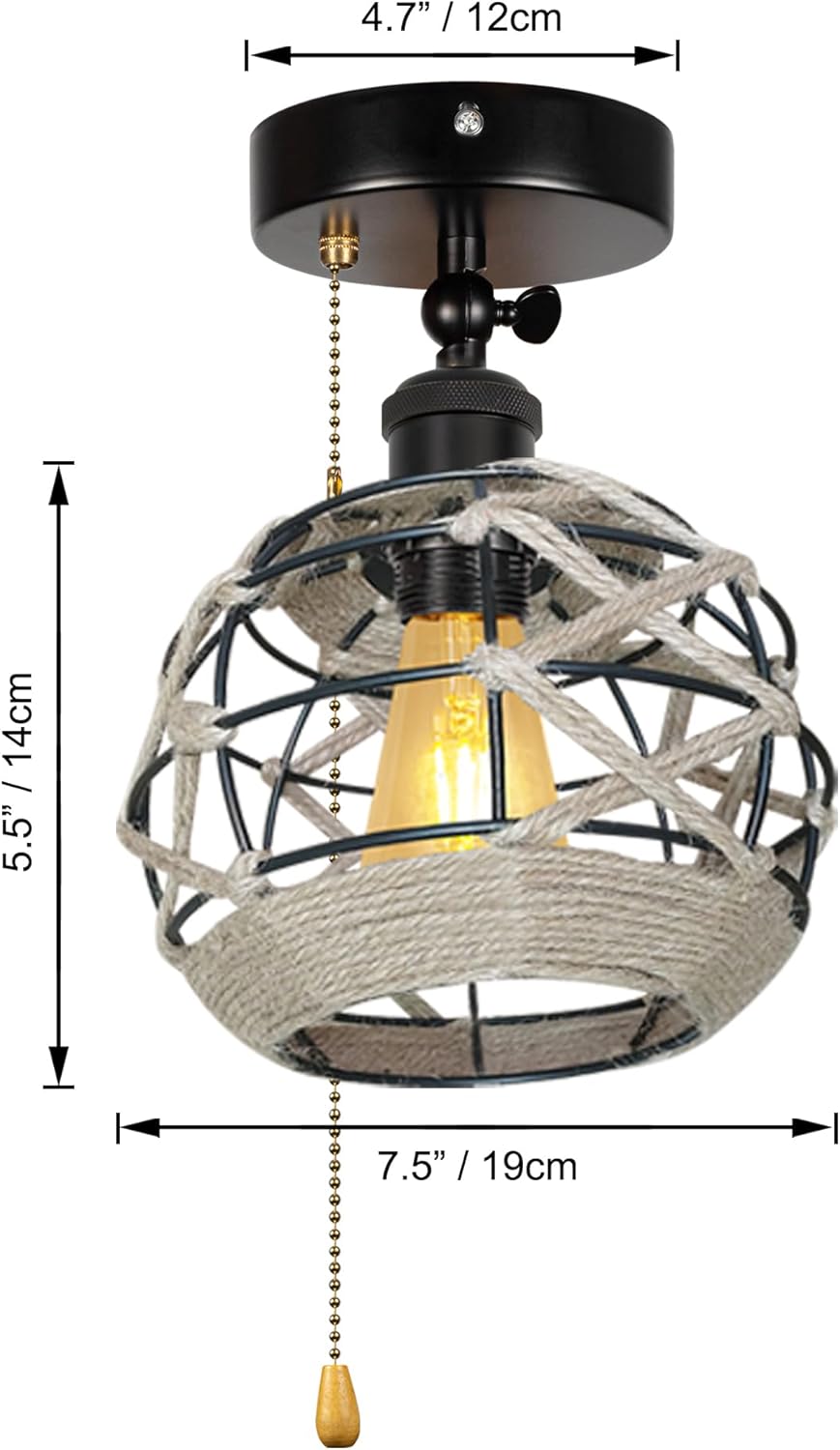 Specification: Type: Semi flush ceiling light Style: Vintage, Edison, Rustic, Farmhouse, Modern Decor Bulb Base: E26 Medium Base Note: Bulbs are not included. Recommend Edison 12V LED bulbs. Maximum Wattage: 60W Voltage: 12V Total height: 5.5in/14cm Suction cup diameter: 4.7in/12cm Diagonal length of Brown Mini Design Bohemian Hollow-carved Designed Rattan lampshade: 7.5"/19cm Color: Brown Update your RV or Trailer interior lights with this beautiful contemporary ceiling light Perfect for your rv camper, porch, dining room, kitchen, living room, study room, bedroom, foyer, garage or any space you want.