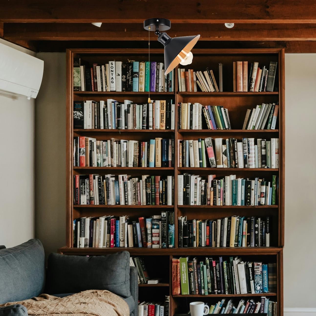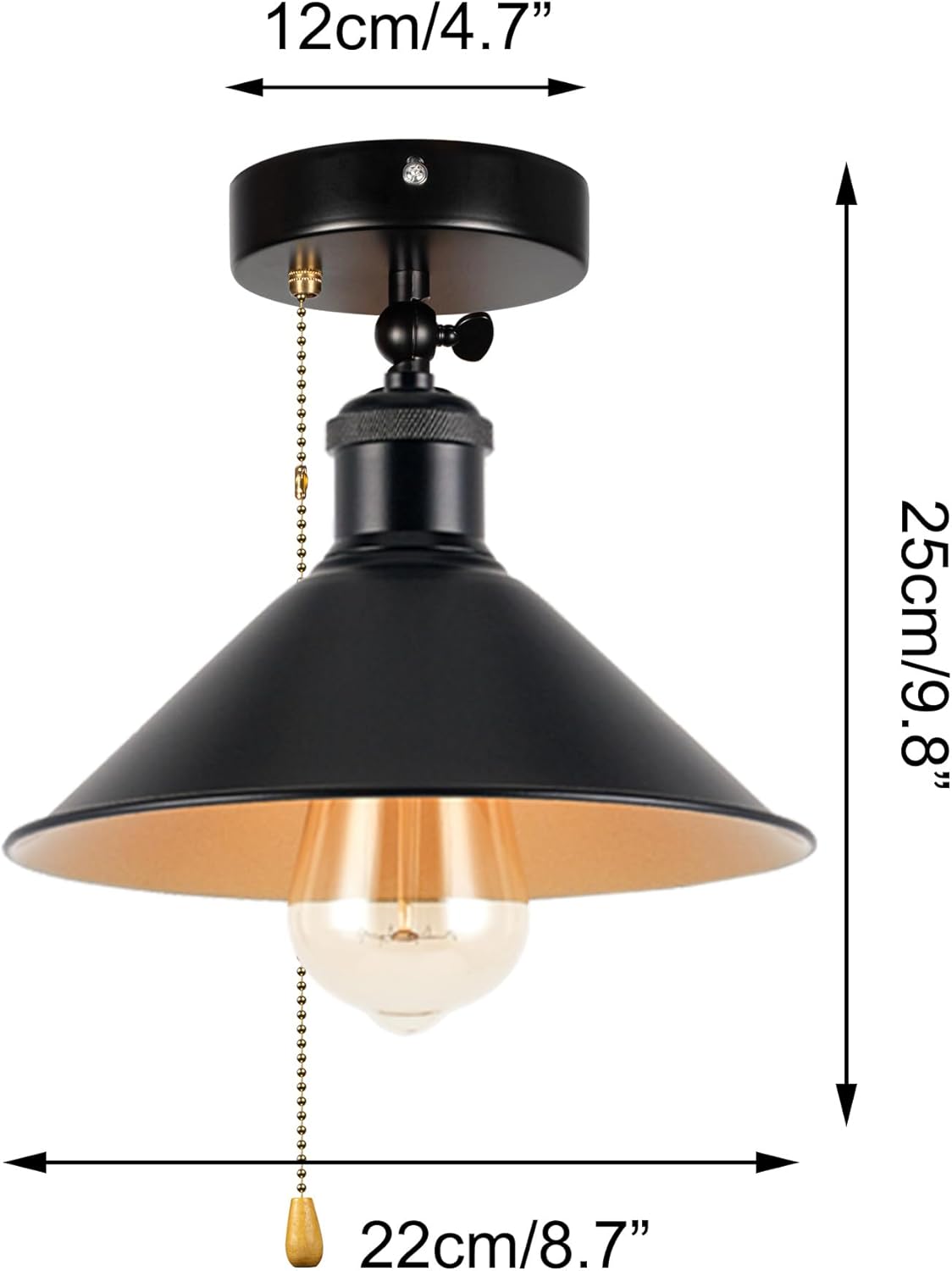 Specification: Type: Semi flush ceiling light Style: Vintage, Edison, Rustic, Farmhouse, Modern Decor Bulb Base: E26 Medium Base (Note: Bulb included, Edison 12V ST64 LED bulb) Voltage: 12V Total height: 9.8in/25cm Suction cup diameter: 4.2in/12cm Diagonal length of Gold interior Design Industrial Metal lampshade: 8.7in/22cm Color: Black & Gold Update your RV or Trailer interior lights with this beautiful contemporary ceiling pendent light Perfect for your rv camper, porch, dining room, kitchen, living room, study room, bedroom, foyer, garage or any space you want.