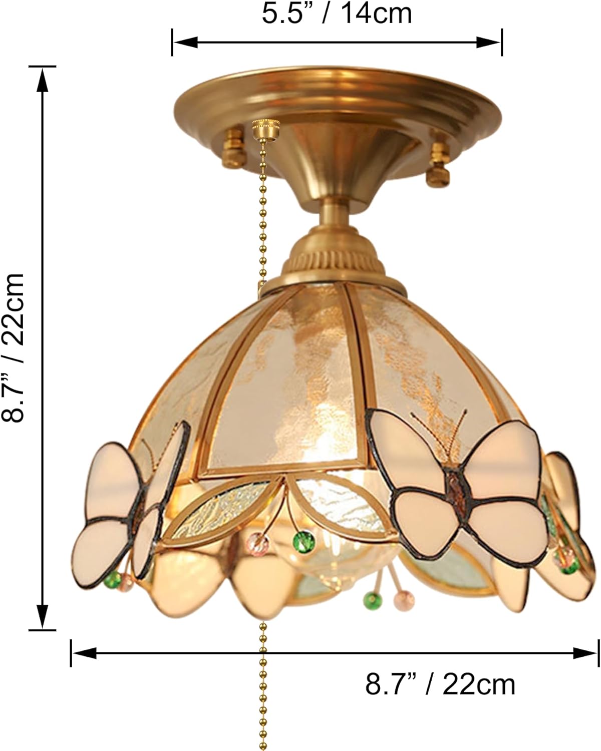 Specification: Type: Semi flush ceiling light Style: Vintage, Tiffany, Edison, Rustic, Farmhouse, Modern Decor Bulb Base: E26 Medium Base Note: Bulbs are not included. Recommend Edison 12V G45 LED bulbs. Maximum Wattage: 60W Voltage: 12V DC Total height: 8.7in/22cm Suction cup diameter: 5.5in/14cm Diagonal length of Butterfly Glass lampshade: 8.7in/22cm Color: White Update your RV or Trailer interior lights with this beautiful contemporary ceiling light / wall lamp. Perfect for your rv camper, porch, dining room, kitchen, living room, study room, bedroom, foyer, garage or any space you want.
