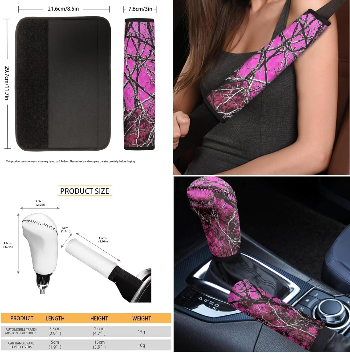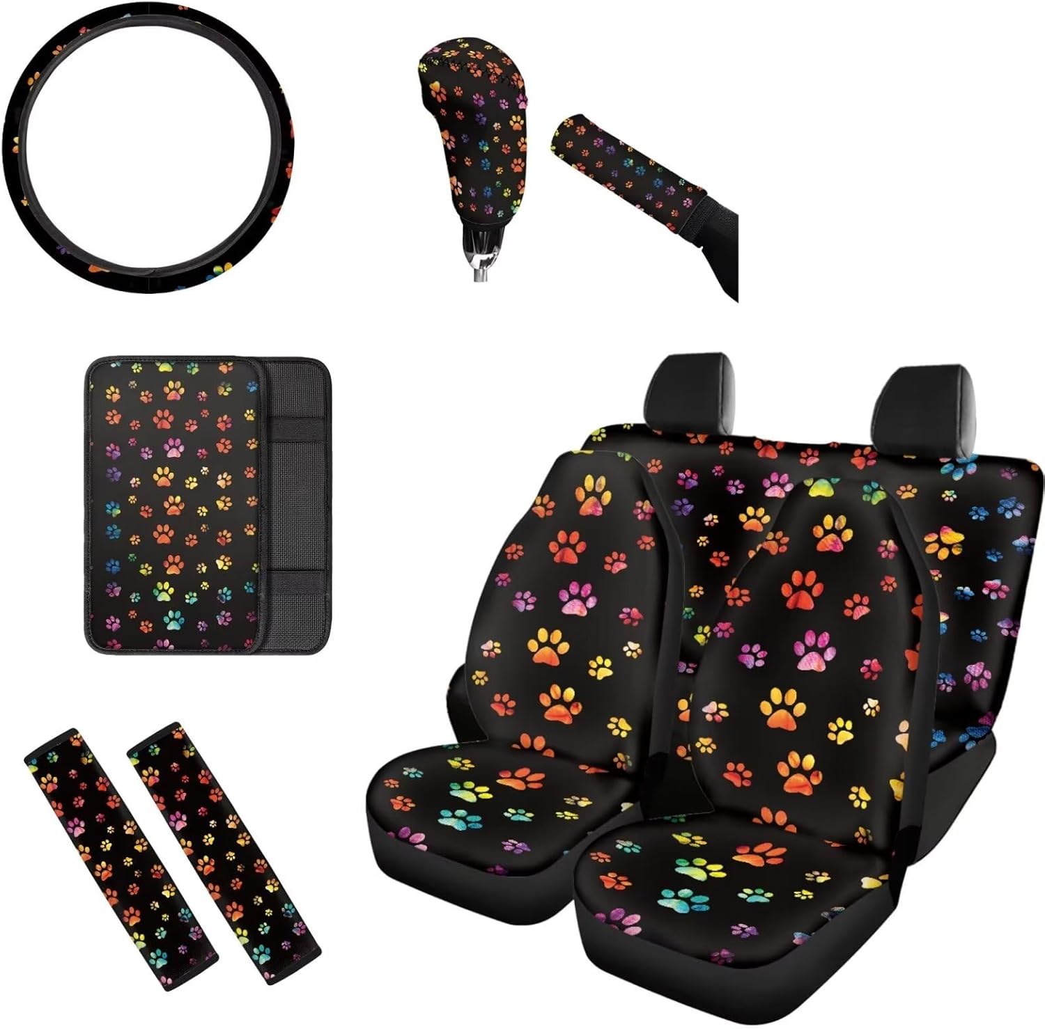 Pzuqiu Car Seat Cover Full Set of 10 Package Car Seat Cover Full Set of 10: 2 *Pieces Front Seat Covers 1 *Piece Rear Backrest Cover 1 *Piece Rear Bench Cushion Cover 1 *Piece Gear Shift Knob Cover 1 *Piece Handbrake Cover 1 *Piece Steering Wheel Cover 2 *Pieces Shoulder Seat Belt Pad Covers 1 *Piece Center Console Armrest Pad Cover Features - High quality fabric can protect your car interior from dirty, mud and other physical hazards. Breathable design makes you feel comfortable when driving. - Elastic side fabric makes sure that the seat covers set can fit almost all cars, SUVs, trucks, and vans. - Separate designs for back seat covers and bottom seat covers makes it much easier to install your car seat covers. Warm Tips - Due to different measurement methods, 1-2cm in size error is normal. - Please check our size chart before you order to avoid inappropriate.