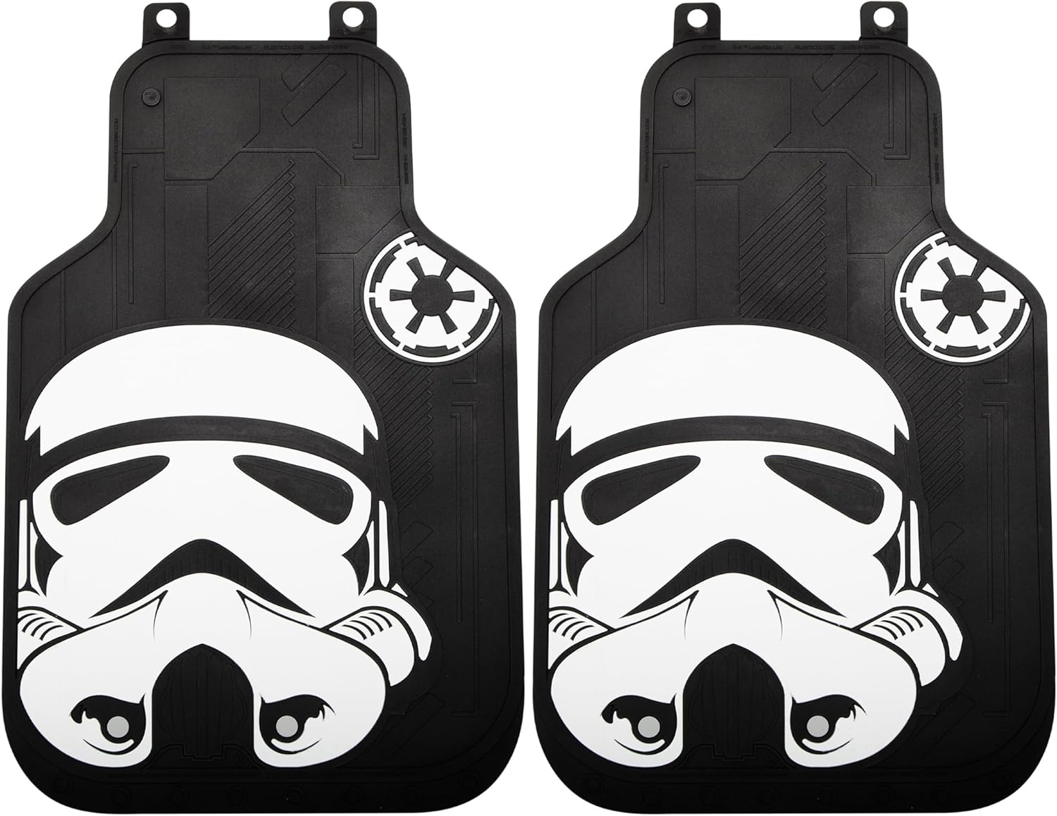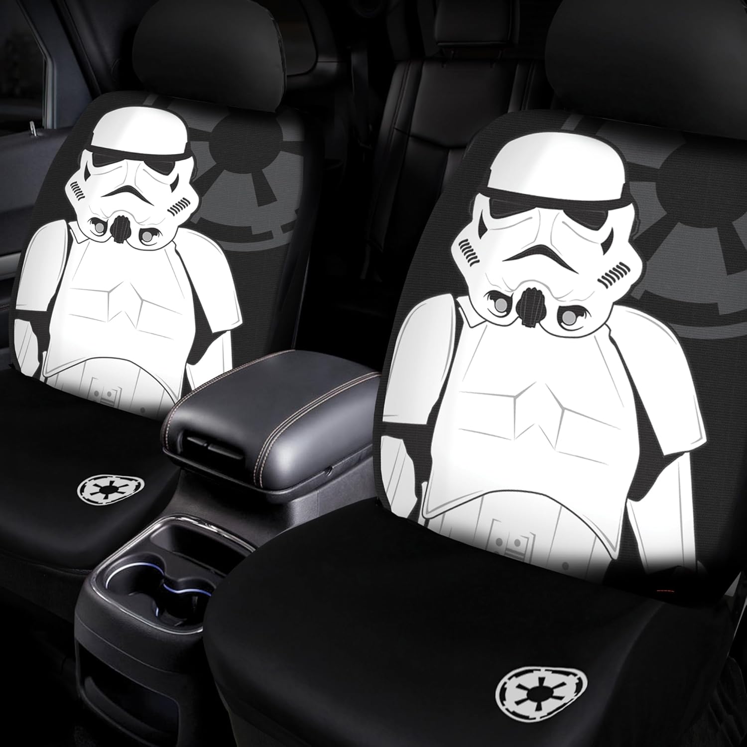 Plasticolor’s 6pc Star Wars Stormtrooper Vehicle Accessory Assortment is designed for the biggest Stormtrooper Fans! All items are Star Wars and Lucasfilm LTD Official Licensed Products and are Universal Fit items designed to fit MOST vehicles. Individual fit will depend on the exact vehicles Make, Model and Year. Kit includes - Two Vehicle Front Floor Mats measuring approximately 17.75 inches wide by 26.50 inches tall, Two Rear Floor Mats measuring approximately 17 inches wide by 14 inches tall, and Two Low-Back Seat Covers. Vehicle must have detachable headrests to install Seat Covers properly. This is the ultimate gift for the true Star Wars fan!