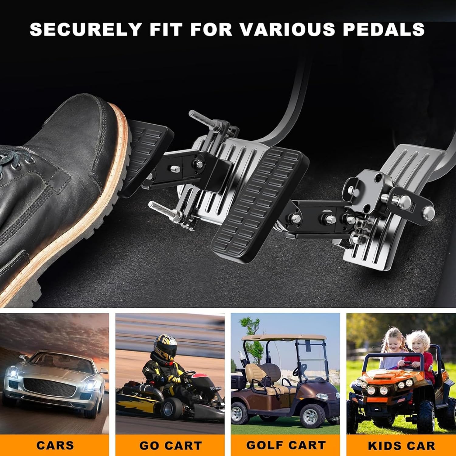1. [Innovative Design]: Suitable for shorter drivers, most vehicles, including cars, toy cars. Adjustable mounting holes ensure compatibility with various pedal sizes. 2. [Antislip Safety First]: Triangle support design offers excellent stability. Non slip rubber cover provides firm grip, preventing feet from slipping. 3. [Easy Installation and Adjustment]: Quick installation with all necessary accessories. Adjust angle and length according to your needs. 4. [Robust Metal Structure]: Made of reinforced steel to prevent deformation and ensure durability. 5. [Universal Fit for Most Vehicles]: Compatible with various vehicle model. Adjustable angle and length ensure secure fit on various pedals. Specification: Item Type: Gas Brake Pedal Extenders Material: Steel Features: The angle and length of the extender can be adjusted according to the driver's body size Brake Pedal Extension Range: Approx. 5.75cm-19.35cm / 2.26in-7.62in Gas Pedal Extension Range: Approx. 5.75cm-16.25cm / 2.26in-6.40in Independence: The product can be used separately. The throttle pedal and brake pedal can be used individually or in combination Fitment: Suitable for most vehicles, including cars, ride on toys How to Use: 1. Assemble all the accessories in advance (professional installation is recommended). 2. Install the assembled components onto the pedal, adjust the angle and length as needed, then secure with bolts. (Adjustable to any angle.) 3. Try driving. If you feel uncomfortable, you need to readjust. PackageList: 1 x Gas Pedal Extender 1 x Brake Pedal Extender 1 x Instruction Manual 10 x Installation Accessories