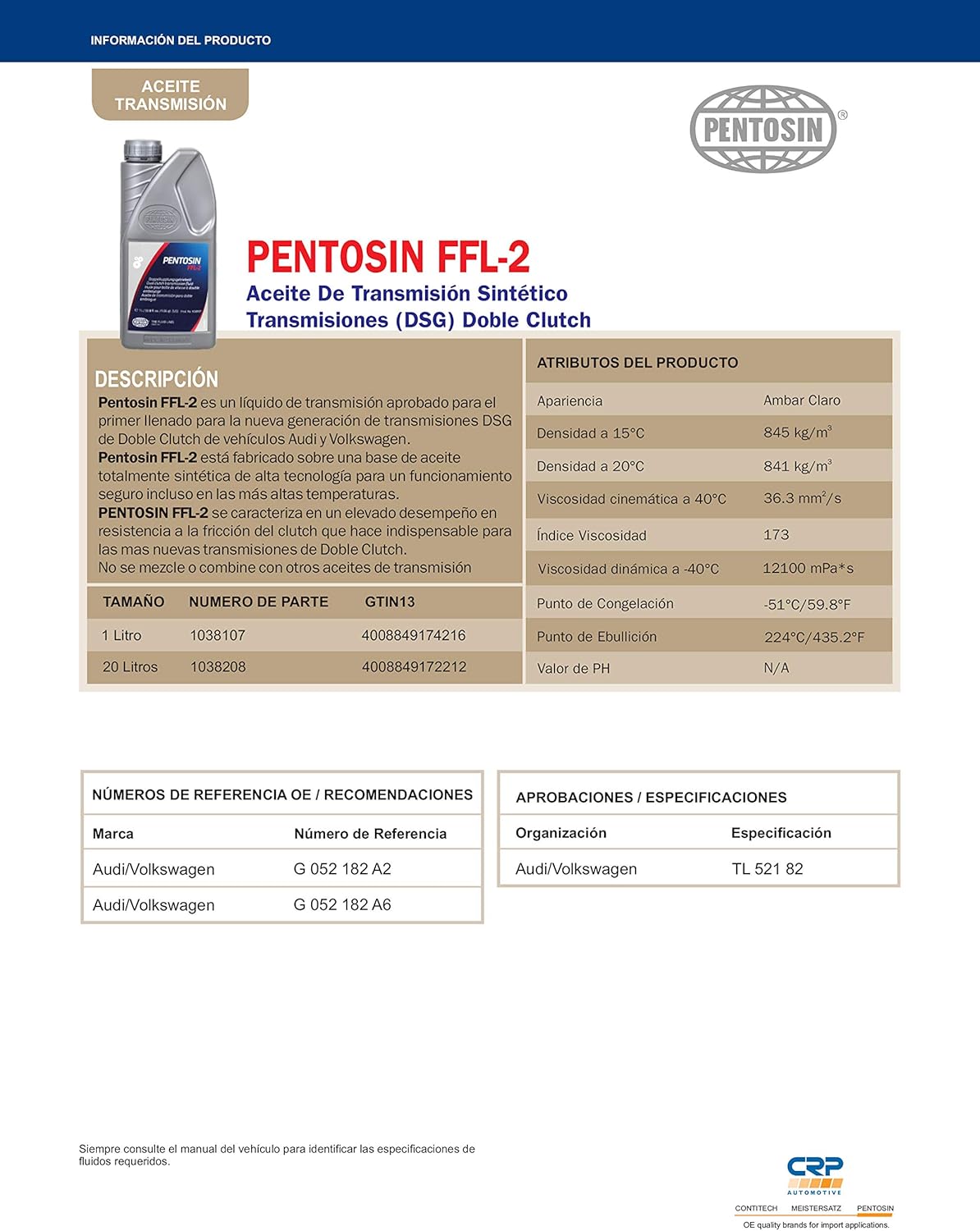 | Included Components | Pentosin 1038107 Ffl2 1L |