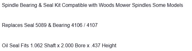 Spindle Bearing Seal Kit Fits Mower Spindles 5089 4106 4107
